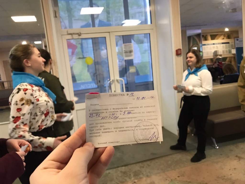 Дарья Ликий о реакции студентов: «Мы раздавали студентам повестки – „Явиться к 9:00 в НТГСПИ”. Некоторые испуганно вчитывались, но когда понимали, в чем дело, радовались, кто-то просто смеялся и улыбался! Все прошло весело!»