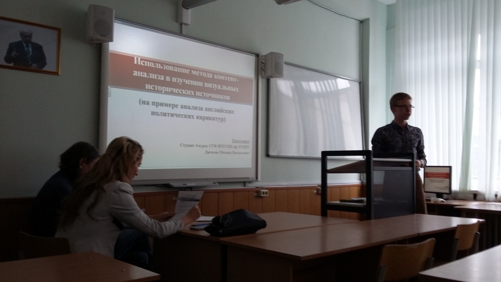 «Шаг в историческую науку» для студентов СГФ оказался успешным: их доклады с большим интересом были заслушаны собравшимися. Дягилев М. В., студент 4 курса, рассказал об использовании метода контент-анализа в изучении визуальных исторических источников (на примере английских политических карикатур). Демина А. А., студентка 1 курса, и Кашина Е. Е., выпускница СГФ 2016 года, ныне библиотекарь МБУК ЦГБ Библиотека №8 г. Н. Тагил, выступили с докладом «Чтение и библиотека в повседневной жизни современного студента». Заочное участие в конференции принял студент Чеченин А. С. с работой «Дуэльные кодексы и регламентация «поединка» чести».