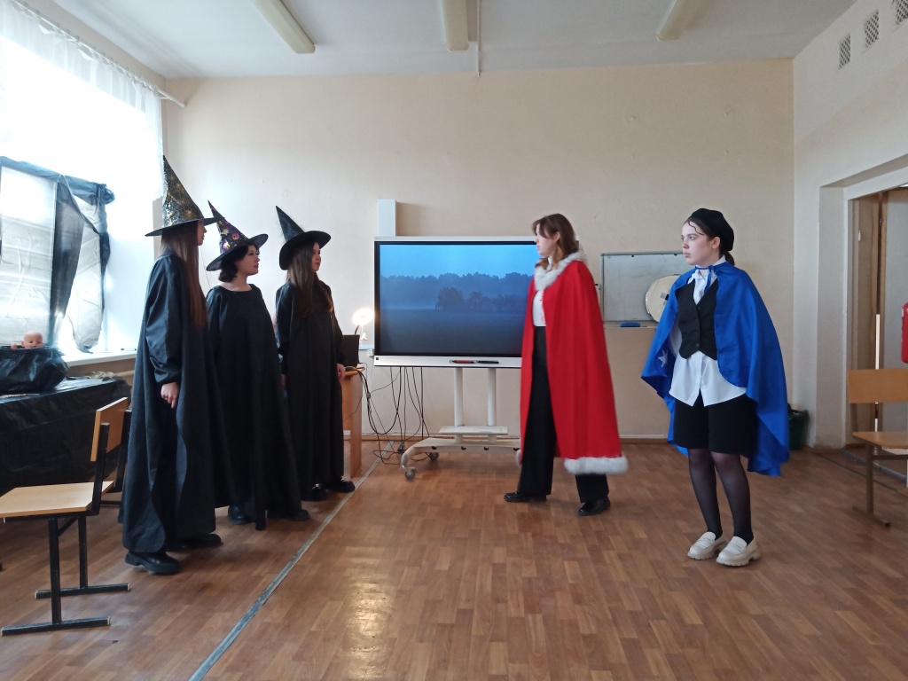 Первокурсники ответственно подошли к театральной постановке. Очень точно было подобрано музыкальное и визуальное сопровождение, продуманы костюмы. Студенты выбрали непростое для воплощения произведение – трагедию «Макбет». Им удалось передать общий характер трагедии – историю падения неплохого изначально человека. Будучи мужественным воином, Макбет, однажды вступив на путь предательства и убийства, не сможет уже остановиться.
