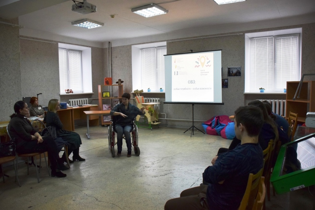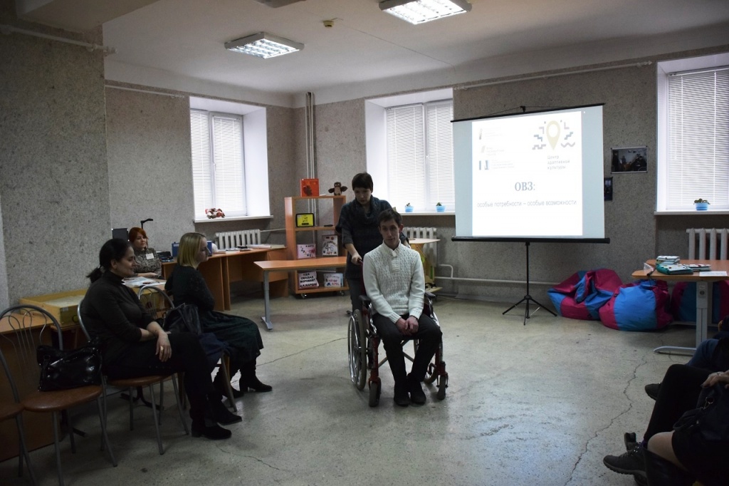 19 февраля 2018 г. в Центральной городской библиотеке в Центре адаптивной культуры состоялось первое занятие в рамках постоянно действующего семинара, запланированного на 2018 год, – «Ограниченные возможности здоровья: особые потребности – особые возможности», в котором приняли участие студенты 4 курса социально-гуманитарного факультета.