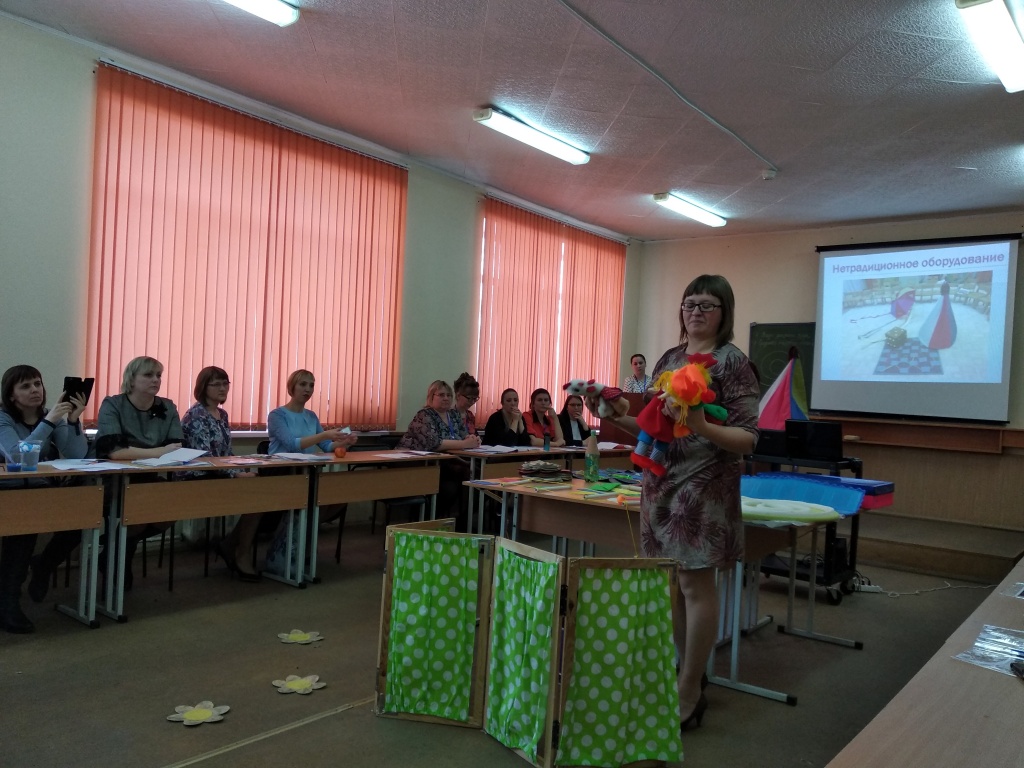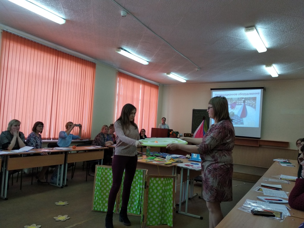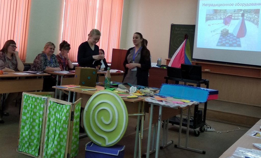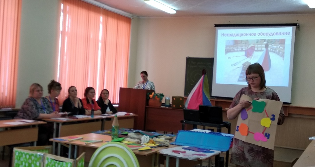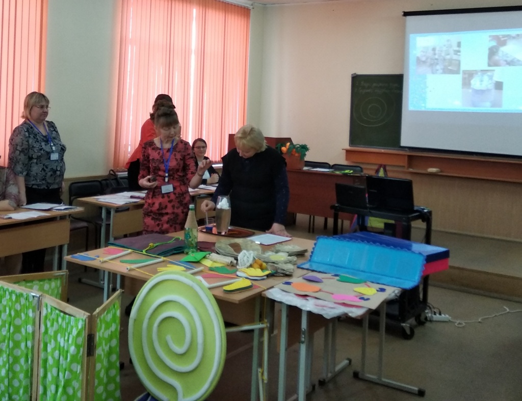 Большой интерес у присутствовавших вызвало оборудование для проведения квестов в дошкольной образовательной организации, изготовленное самими педагогами и родителями из бросовых и нетрадиционных материалов.
