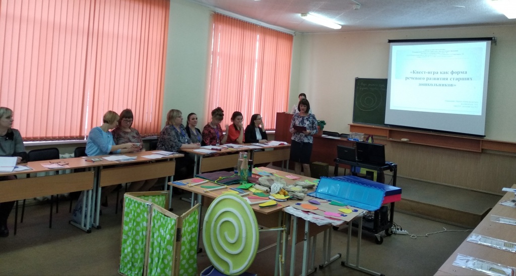 20 декабря 2018 г. на базе факультета психолого-педагогического образования методическим ресурсным центром Горноуральского городского округа по направлению «Игровая деятельность детей дошкольного возраста» (МБДОУ детский сад № 34 поселка Первомайский) был проведен семинар-практикум «Квест-игра как средство формирования познавательной активности детей дошкольного возраста».