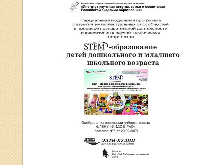 На семинаре-практикуме обсуждались вопросы одного из перспективных направлений современного образования, основанного на применении междисциплинарного и прикладного подхода, а также на интеграции пяти дисциплин в единую схему. Доцент кафедры ППО А. В. Соколова обозначила основные идеи и раскрыла содержание образовательных модулей парциальной модульной программы развития интеллектуальных способностей в процессе познавательной деятельности и вовлечения в научно-техническое творчество «STEM-образование детей дошкольного и младшего школьного возраста».