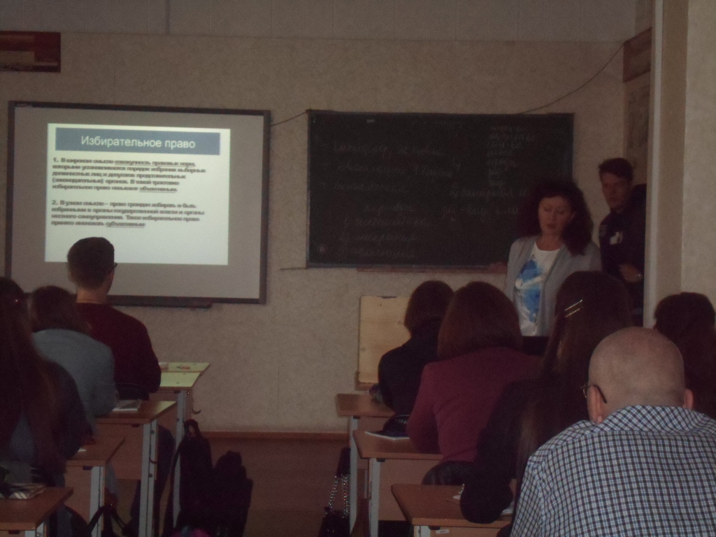 Встреча прошла в формате мини-лекции на тему «Избирательная система РФ» и стала полезной как для студентов дневного, так и заочного отделения, изучающих данную тему в рамках курсов «Конституционное право», «Правоведение» и «Избирательное право».