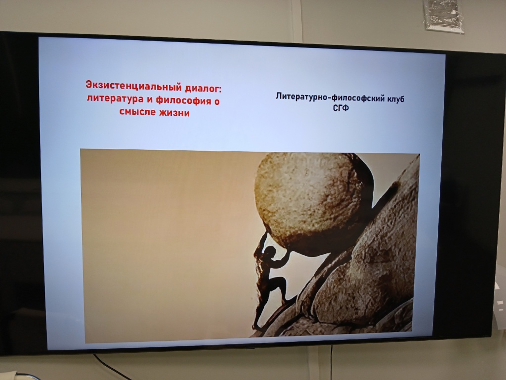 В рамках форума клуб организовал секцию в формате экзистенциального диалога на тему «Литература и философия о смысле жизни». В ходе обсуждения с аудиторией были рассмотрены характеристики эпохи, обусловившей появление экзистенциальной философии, а также глубокая связь литературы и философии. Особое внимание было уделено ключевым экзистенциальным понятиям: абсурд, смысл, свобода, ответственность. Участники диалога акцентировали внимание на биографиях и знаковых текстах таких выдающихся мыслителей и писателей, как Ж.-П. Сартр, А. Камю, Ф. Кафка, Ф. М. Достоевский.