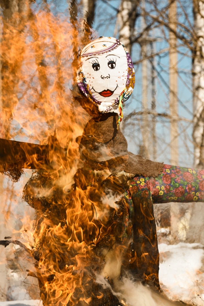 «Зиму провожаем, а весну встречаем!» – с этими словами зажигали чучело, которое символизирует суровую зиму. «Гори, гори ясно, чтобы не погасло!»