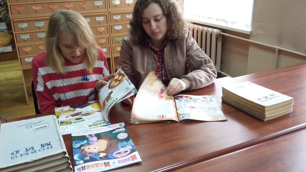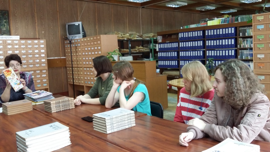Так, 28 апреля в зале периодики НТГСПИ для школьников был организован кураторский час «История Отечества на страницах периодических изданий». Интересный обзор современных детских журналов провела В. И. Коновалова, директор НБ. Некоторые из журналов школьники читали в детстве, другие увидели впервые. Валентина Ивановна показала как социально-экономические, политические условия в нашей стране влияли на репертуар детских изданий. Далее учащимся в прямом и переносном смыслах удалось ощутить запах истории на страницах «литературных толстяков» - журналов «Новый мир», «Дружба народов» и др. В завершении школьники прошли по лабиринту книжных полок зала периодики и убедились, какой колоссальный ресурс по многим предметам, в том числе и по истории на них храниться. С любопытством разглядывали школьники и выставку рисунков учащихся художественных школ, посвященных теме экологии, разместившуюся в зале периодики.