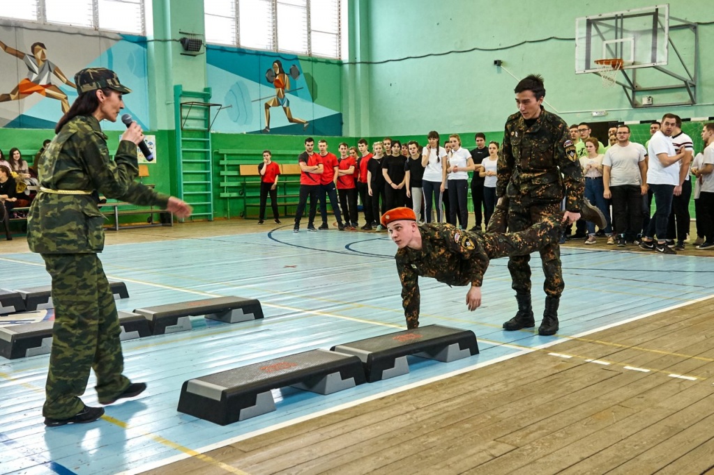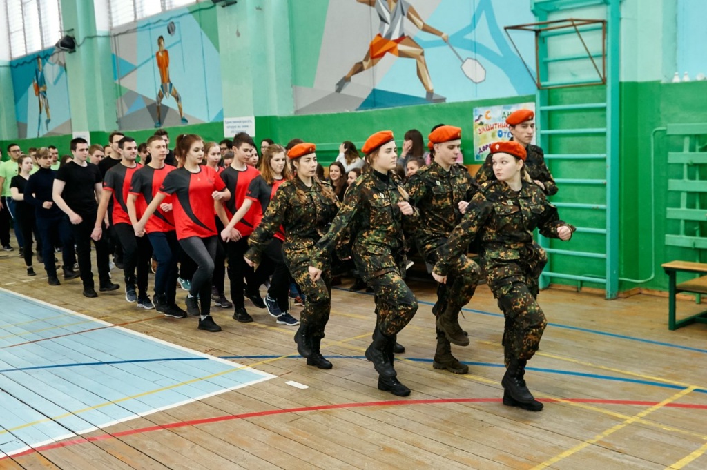 Праздничное мероприятие началось с показательного выступления Юнармейцев, что придало соревнованиям торжественности. Начальник Управления воспитательной работы Наталия Ивановна Перминова поприветствовала всех участников и поздравила их сильную половину с приближающимся праздником, после чего и приступили к конкурсным испытаниям.