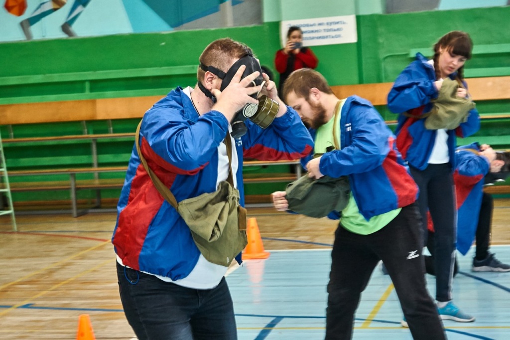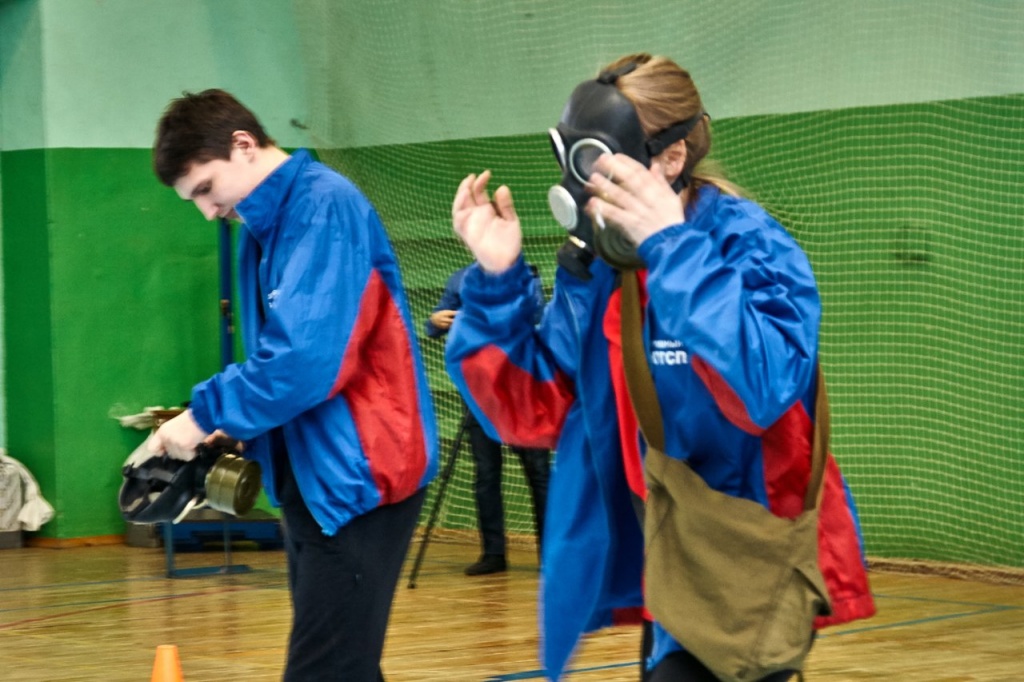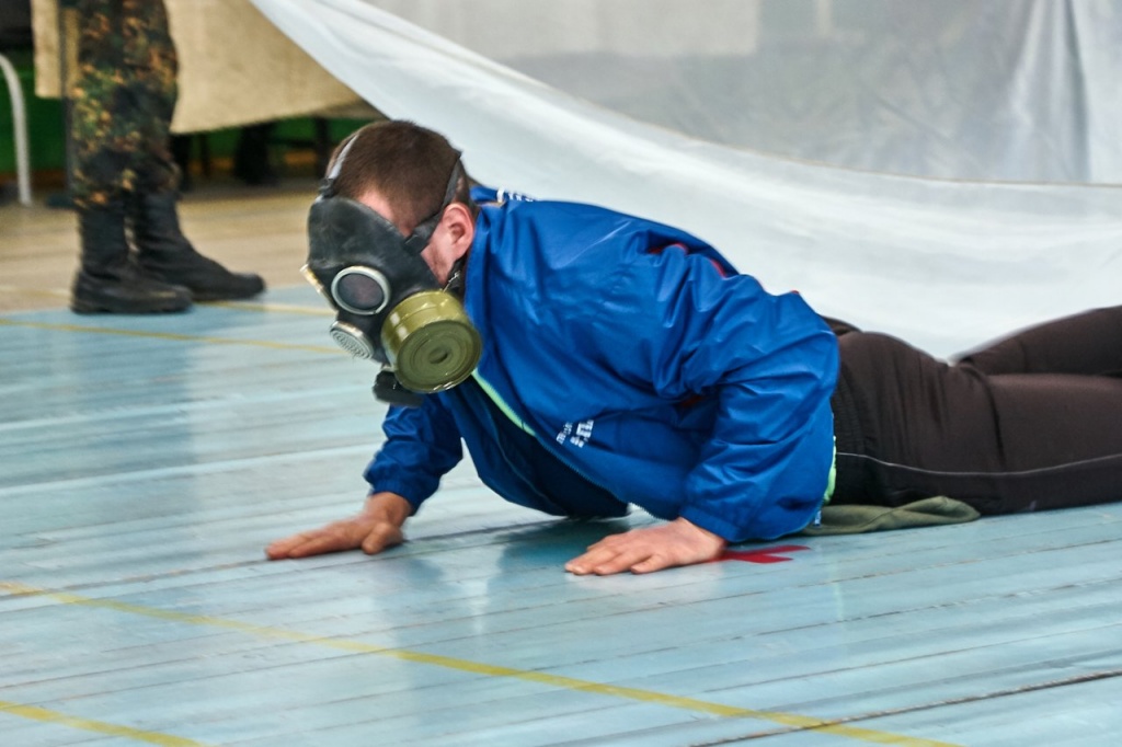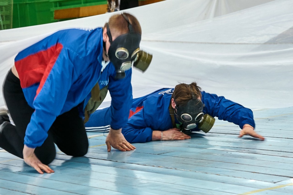 физическая подготовка (бег в противогазах с преодолением препятствий);