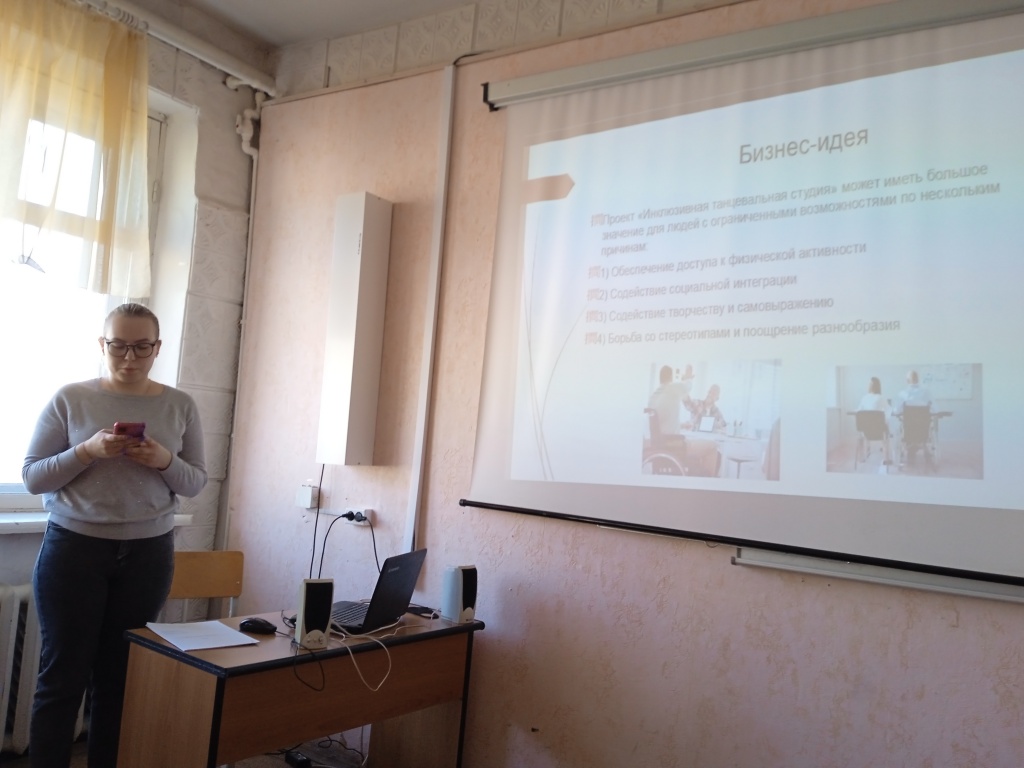 Диапазон проекта «Педагогический трансфер „Социальное образование”» по наполненности видами грамотности достаточно широк. 1 апреля предпринимательскую грамотность постигали студенты 4 курса направления «Социальная работа», профиль «Управление и предпринимательство в социальной сфере». Полученные знания в ходе реализации дисциплины «Технологии предпринимательской деятельности» студенты воплотили в свои бизнес-проекты под руководством канд. ист. наук, доцента Н. А. Тарасовой и канд. пед. наук, доцента, Т. Ю. Основиной. Они с головой погрузились в написание социально-инновационных бизнес-идей и представили бизнес-проекты, направленные на получение социальных благ людьми с ограниченными возможностями здоровья по разным направлениям, например, таких, как экстремальный туризм, инклюзивный театр, бачата, дайвинг, квесты и т. д.