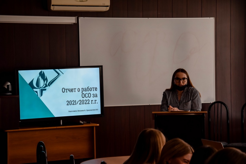 По первому пункту участники конференции заслушали отчет Председателя Объединенного совета обучающихся Ирины Хисамовой о деятельности ОСО за год. Наибольшее внимание было уделено степени достижения поставленных целей с предыдущей отчетно-выборной конференции, а конкретнее по следующим направлениям: