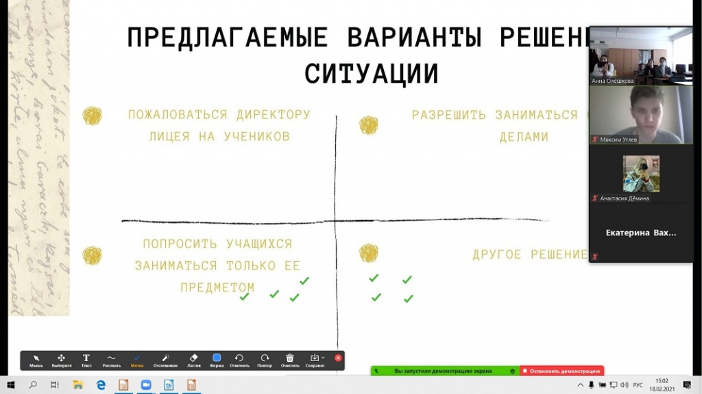 Анализ педагогических кейсов в «Круге просмотра» развивает в студентах профессиональные компетенции и позволяет посмотреть на любую проблемную ситуацию с разных сторон.