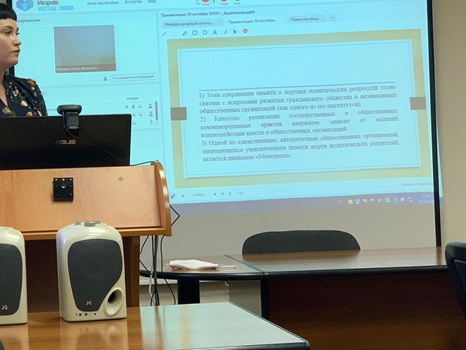 На заседании СМУ РГППУ 29 октября Е. Г. Харитонова представила научный доклад «Актуализация темы памяти о жертвах политических репрессий в СССР», приурочив его к общероссийскому Дню памяти жертв политических репрессий. Несмотря на сложность и неоднозначность темы, сообщество молодых ученых восприняло ее с интересом, возникла хорошая дискуссия. Подводя итоги заседания, СМУ РГППУ принял решение актуализировать проблематику памяти о жертвах политических репрессий на научном, научно-популярном и воспитательном уровне.