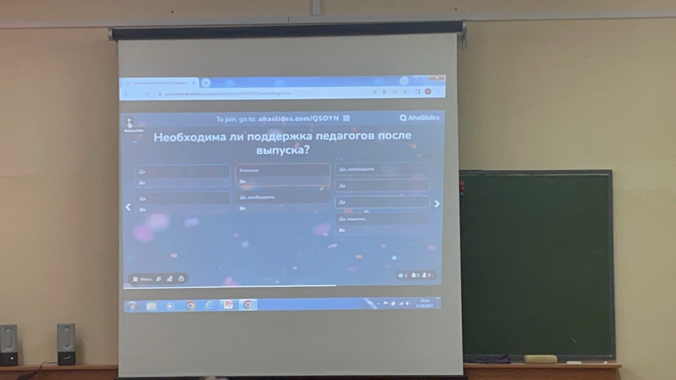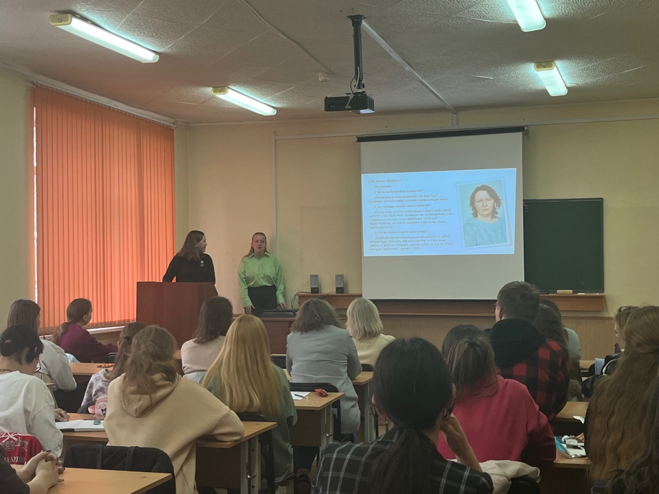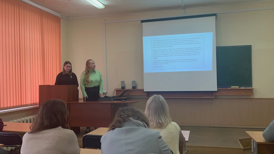 Провели заседвние студентки ФППО Светлана Воронцова (Нт-505о НДО) и Серафима Еловикова (Нт-109о НДО). Девочки в своем выступлении приводили примеры рассказов студентов и преподавателей нашего факультета о том, как они пришли к своей профессии. Участники клуба анализировали, обсуждали, делились своими мыслями. Также было проведено электронное голосование, где респондентам нужно было ответить на вопрос: «Необходима ли поддержка педагога после выпуска?» В результате голосование показало, что большинство голосов респондентов было за вариант: да, это необходимо выпускникам.