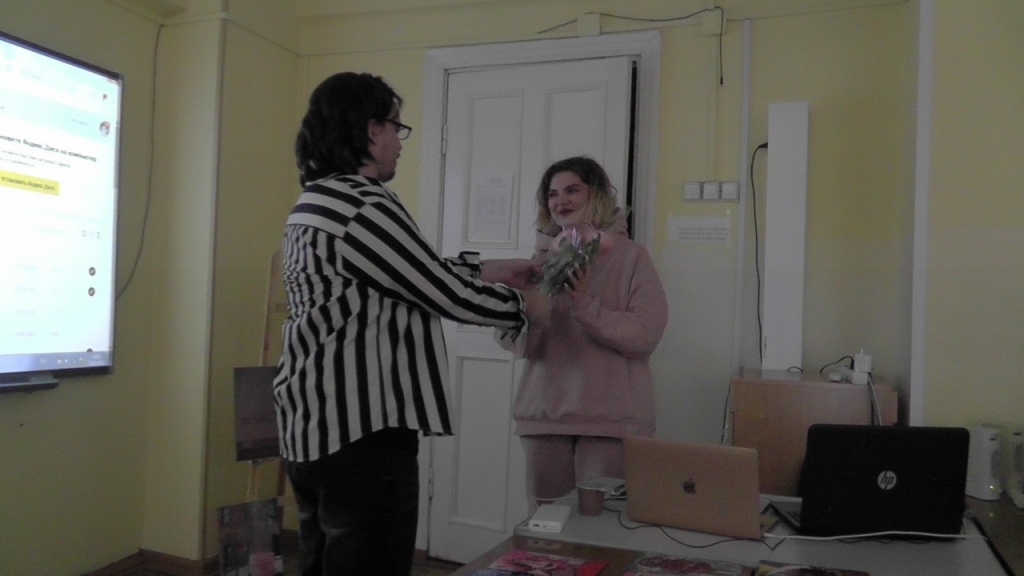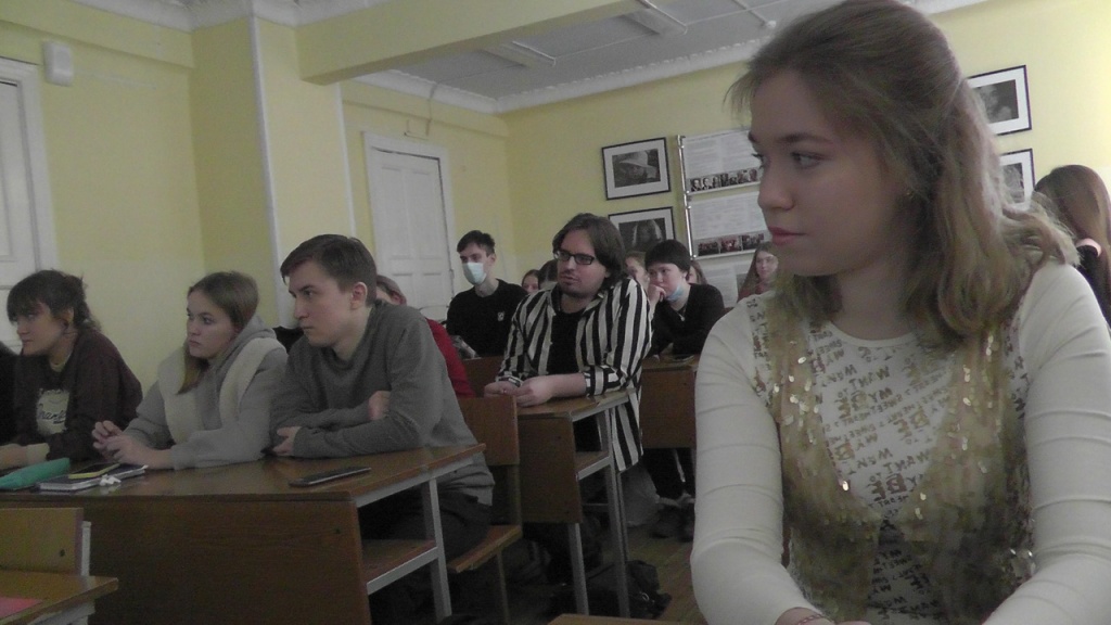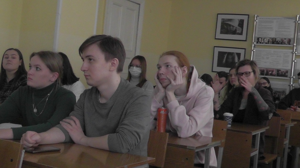 Заинтересованная аудитория, которая слушает, задает вопросы, вступает в дискуссию – это студенты 3 курса профилей «Изобразительное искусство и дизайн» и студенты 2 курса профилей «Музыка и мировая художественная культура», организаторы проекта – декан факультета художественного образования Н. С. Кузнецова и доцент кафедры художественного образования А. Н. Садриева.