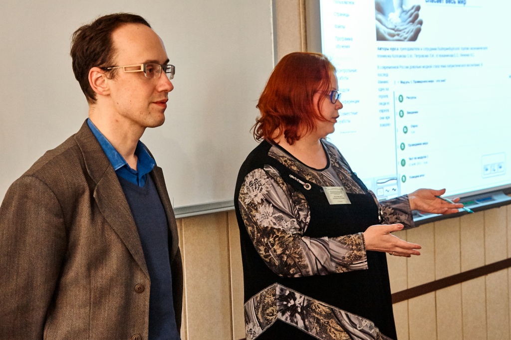 М. В. Лапенок, доктор пед. наук, директор Института математики, информатики информационных технологий ФГБОУ ВО УрГПУ поделилась особенностями подготовки будущих и действующих учителей к созданию и использованию электронных образовательных ресурсов в учебном процессе в УрГПУ, что становится обязательной составляющей в подготовке любого педагога в условиях внедрения профессиональных стандартов. И. В. Рожина, канд. пед. наук, доцент кафедры информатики, информационных технологий и методики обучения информатике ФГБОУ ВО УрГПУ рассмотрела основные возможности использования информационной образовательной среды для подготовки будущих учителей. Г. В. Прозорова, канд. пед. наук, доцент кафедры прикладной геофизики Тюменского индустриального университета обобщила опыт использования различных приемов организации учебной деятельности при освоении современных информационных и коммуникационных технологий на примере геоинформационных систем.