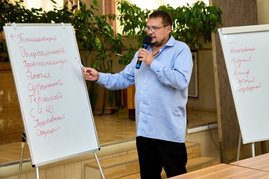 Объединенный совет обучающихся, студенческое объединение «Центр карьеры» и отдел воспитательной работы института провели мероприятие «Образ современного учителя». Лицеистов познакомили со структурой молодежных объединений филиала, а также продемонстрировали основные традиционные мероприятия, проводимые в вузе. Затем ученики разделились на команды и решали кейсовые задачи, которые предложила им председатель ОСО Карина Денисовна Егошина, обучающаяся 3 курса социально-гуманитарного факультета. Была сформулирована цель работы современного учителя и то, каким видят его нынешние ученики. В конце мозгового штурма получился собирательный идеальный образ современного учителя. Все лицеисты торжественно поклялись в будущей своей деятельности соответствовать этой высокой планке современного учителя. Учащиеся показали себя оригинальными, креативными, инициативными, умеющими работать в группе и коммуницировать!