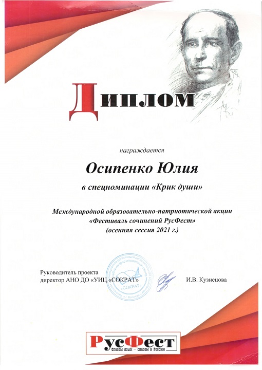 В конце ноября студенты факультета филологии и межкультурной коммуникации приняли участие в ежегодной международной образовательно-патриотической акции РусФест. Осеннюю сессию в 2021 г. посвятили юбилею Николая Рубцова. Участникам акции необходимо было написать сочинение на одну из предложенных тем: «Как я вижу язык своей профессии?» или «А хочется речи простой, человечьей» (Н. Рубцов).