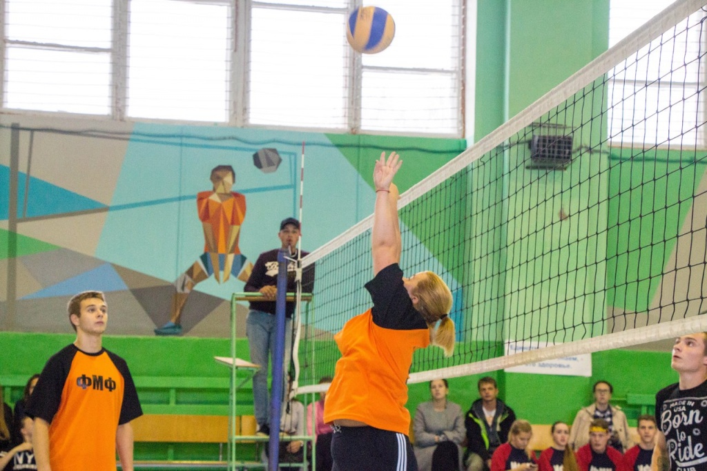 С 19 по 21 сентября в большом спортивном зале проходили соревнования по волейболу среди смешанных команд. Участие в турнире приняли 6 команд, каждая из которых представляла свой факультет, плюс команда ФСБЖ (СПО). Команды были разделены на две группы, в которых проводились игры по круговой системе. Игры проходили в интересной, бескомпромиссной, захватывающей дух борьбе. Болельщики активно поддерживали своих ребят, заряжали позитивом, создавали невероятную атмосферу, вдохновляя участников соревнований бурными овациями. В матче за третье место встречались команды ФЕМИ и ФППО, сильнее оказались ребята с ФЕМИ. В финале сошлись ФСБЖ и ФСБЖ (СПО), младшие по возрасту одержали уверенную победу, не оставив никаких шансов страшим товарищам. Стоит отметить высокий уровень игры некоторых студентов. Ребята, несомненно, должны усилить сборные команды НТГСПИ по волейболу.