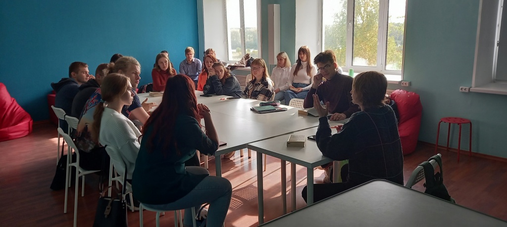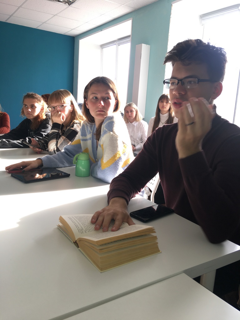 В обсуждении книги приняли участие студенты 2–5 курсов социально-гуманитарного факультета. Модератор клуба – Анна Михайловна Олешкова, кандидат исторических наук, доцент кафедры ГСЭН.