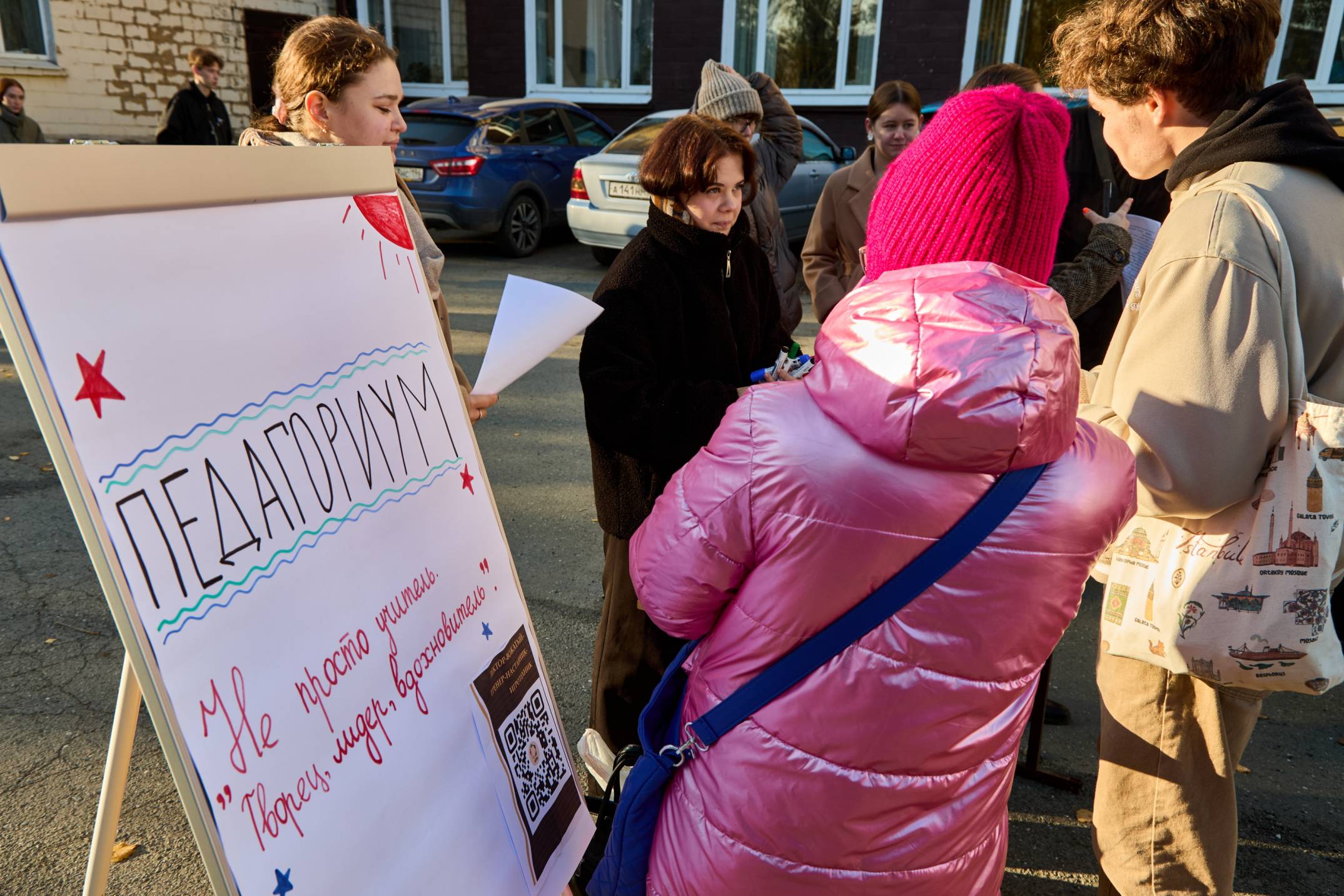Педагогическая мастерская встретила гостей интерактивными челленджами на внимание, дикцию и импровизацию. Желающие могли пройти рисуночный тест «Я сам», чтобы лучше понять свои личностные качества и потенциал, сразу получить консультацию от опытных участников объединения.