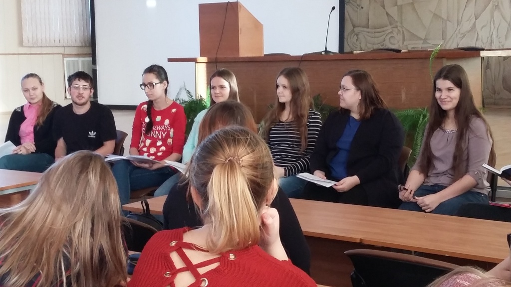 К общероссийской рефлексии 100-летия революции в ноябре-декабре присоединились и студенты НТГСПИ в рамках изучения дисциплины «История». Так, на двух факультетах, ФППО и ФФМК, прошли панельные дискуссии на тему «Октябрьская революция: неудачный эксперимент или прорыв в будущее?» Участникам дискуссии необходимо было от лица конкретного представителя той или иной политической партии, научного направления, общественного движения или создателя художественного произведения объяснить суть позиции по обозначенной проблеме. Такая интерактивная форма работы, как панельная дискуссия, формирует у студентов навыки анализа первоисточников, публичного выступления, диалогового общения. Дискуссия открыла и актерские способности студентов: так, у студентов-филологов более убедительным было выступление «К. Маркса» – Станислава Соловьева, а у студентов ФППО – выступления «В. И. Ленина» – Марии Захаровой и «В. Хотиненко» – Любови Бызовой.