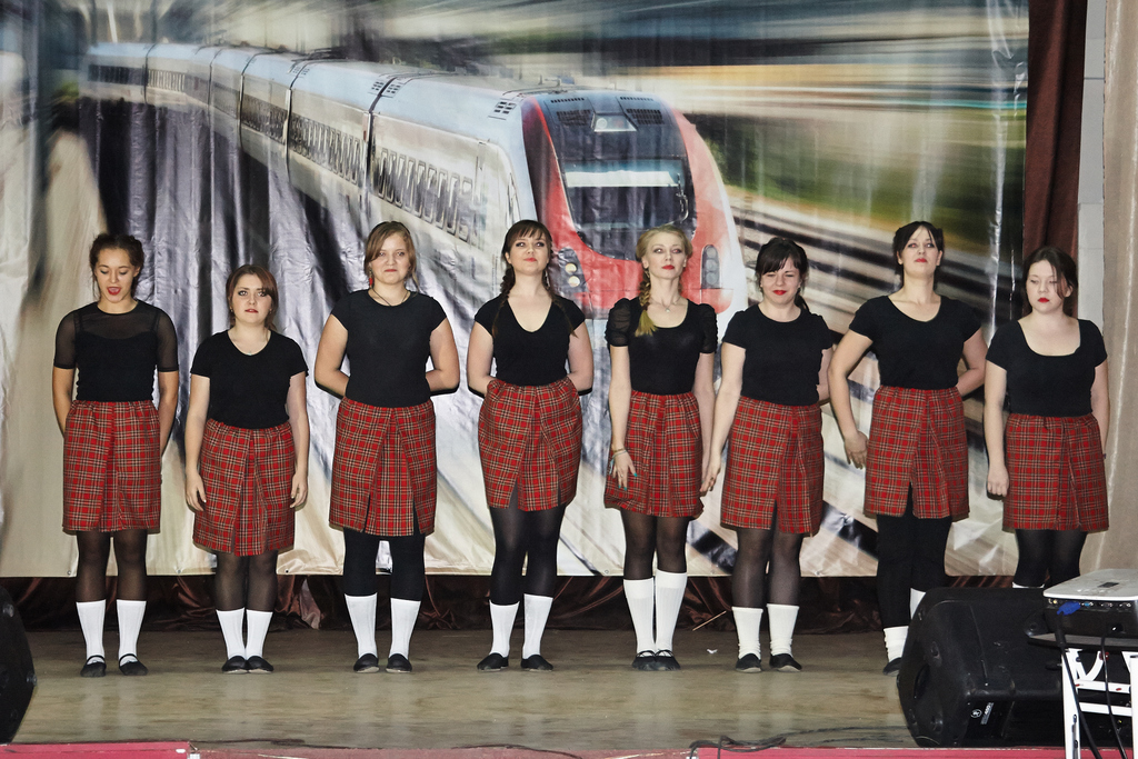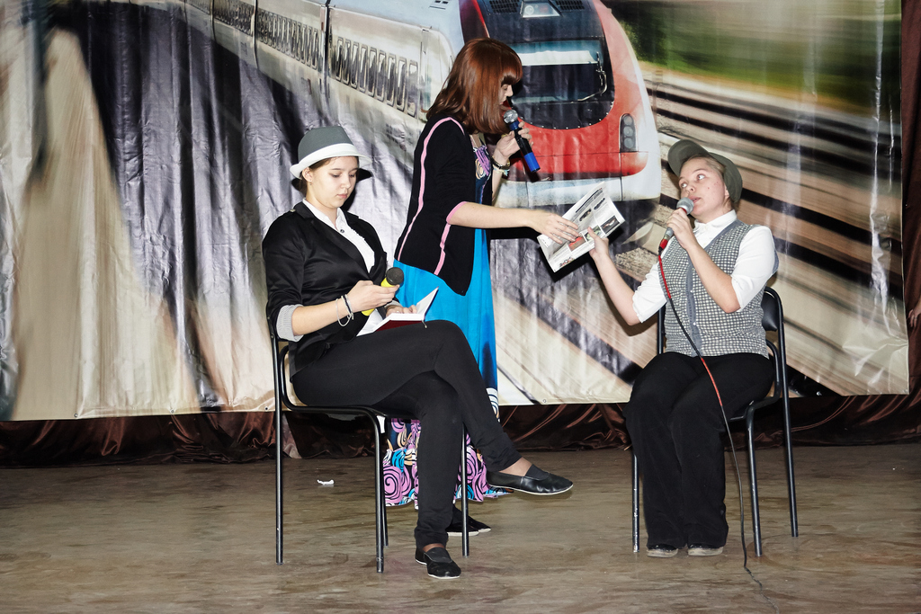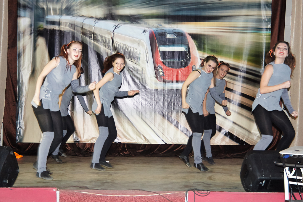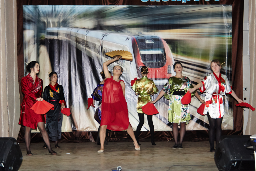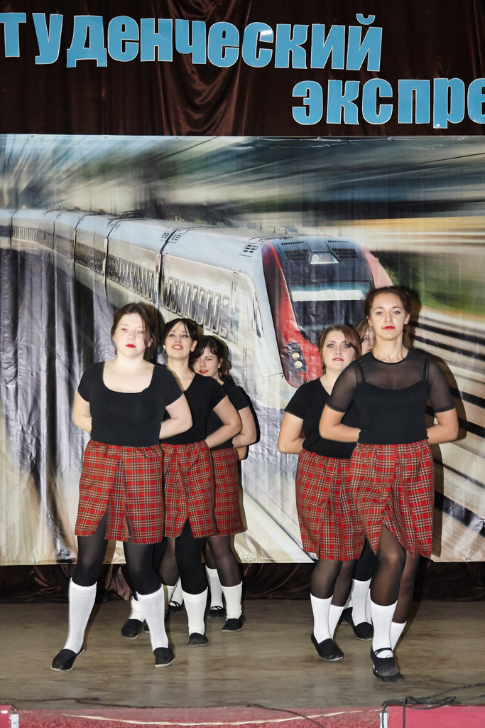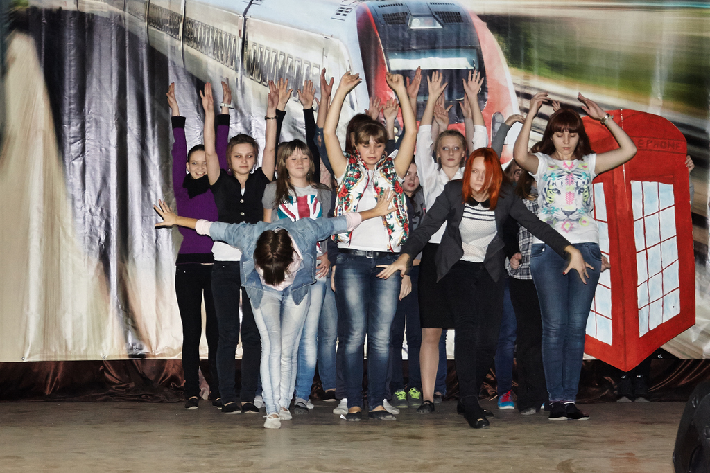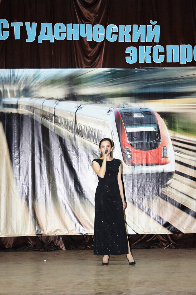 В 14.30 в актовом зале состоялся праздничный концерт. Поезд под названием “Студенческий экспресс” отправился с нашими студентами и преподавателями в разные страны, вели экскурсию проводники Михаил и Анастасия.