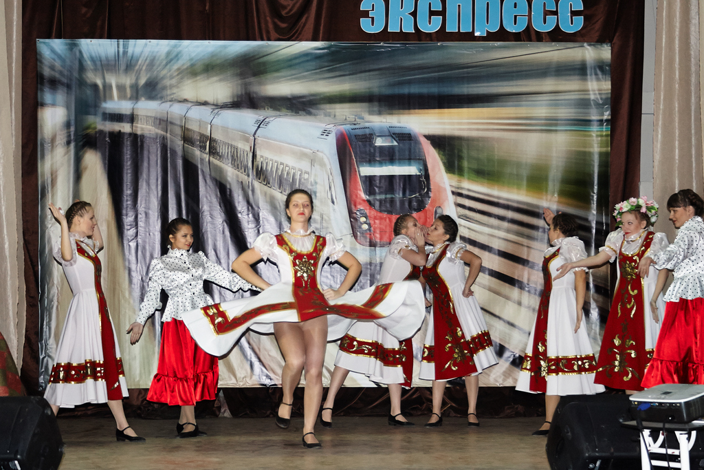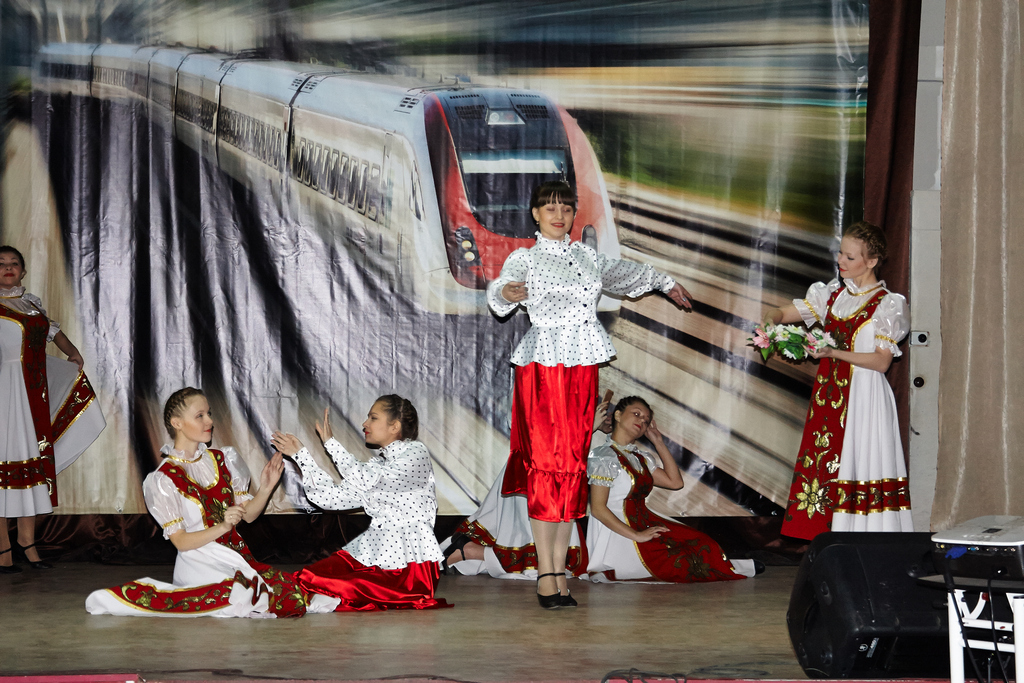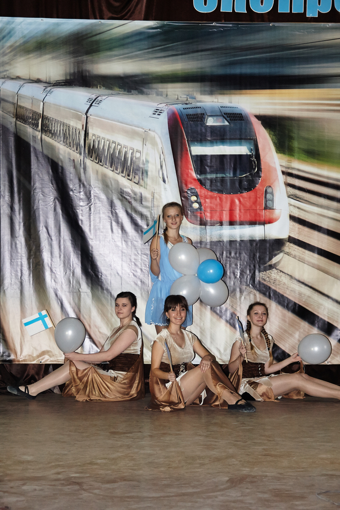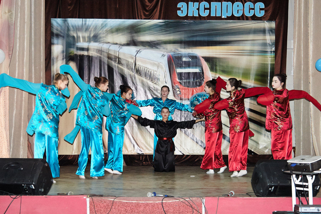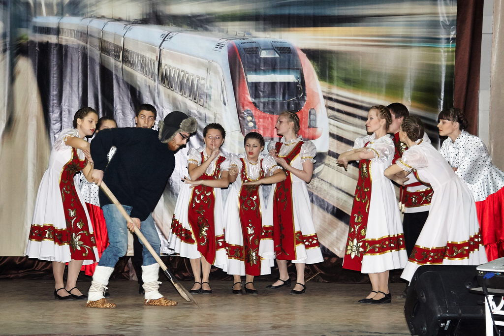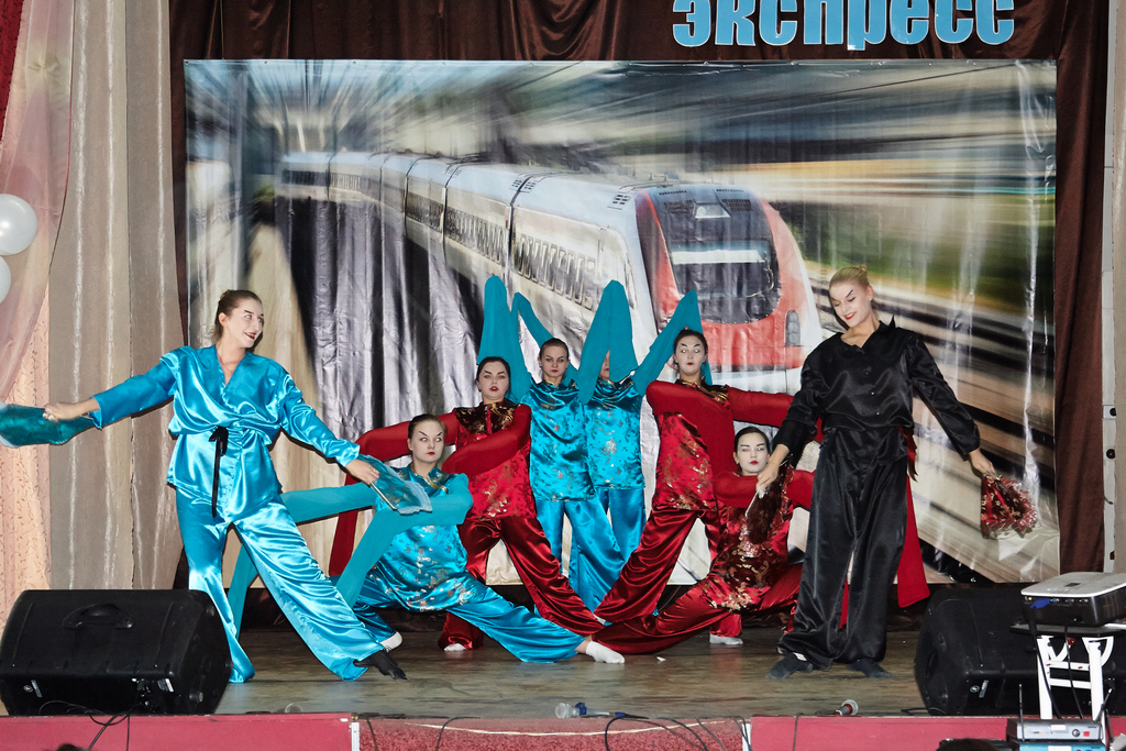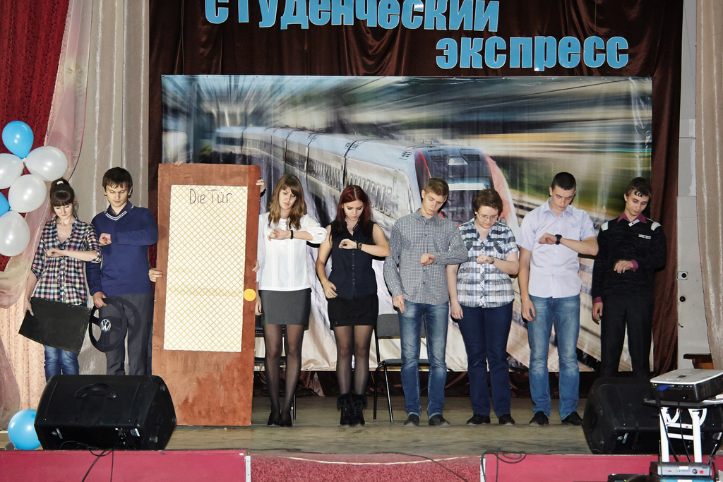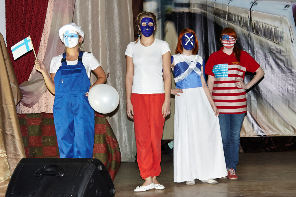 В 14.30 в актовом зале состоялся праздничный концерт. Поезд под названием “Студенческий экспресс” отправился с нашими студентами и преподавателями в разные страны, вели экскурсию проводники Михаил и Анастасия.