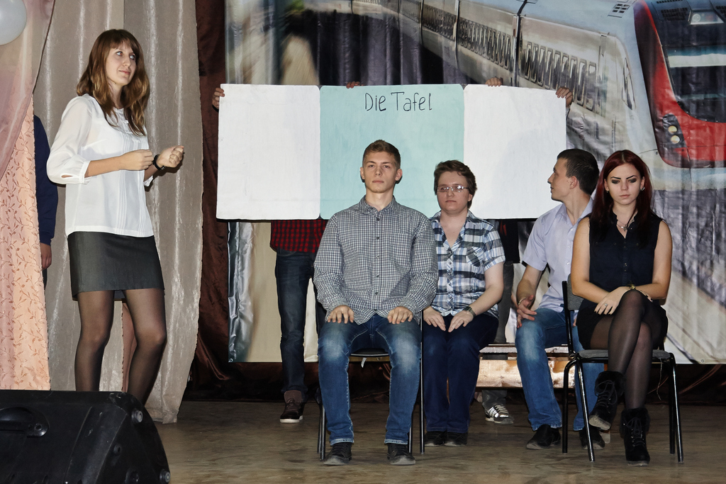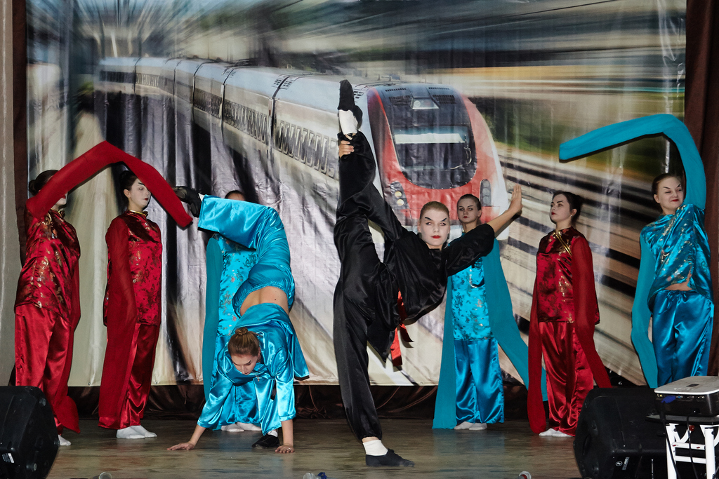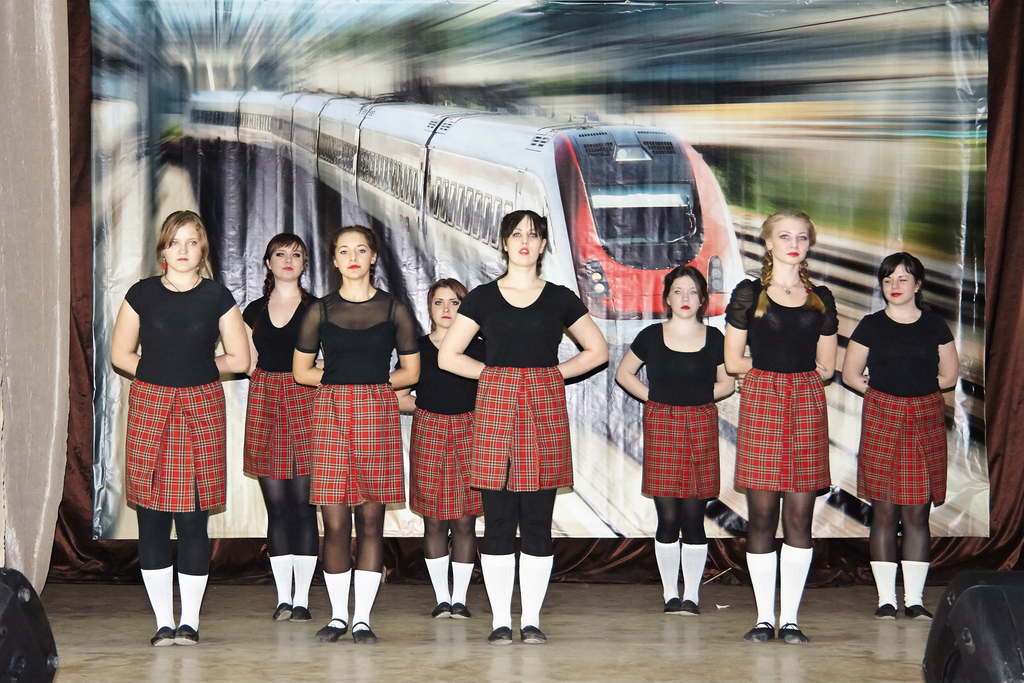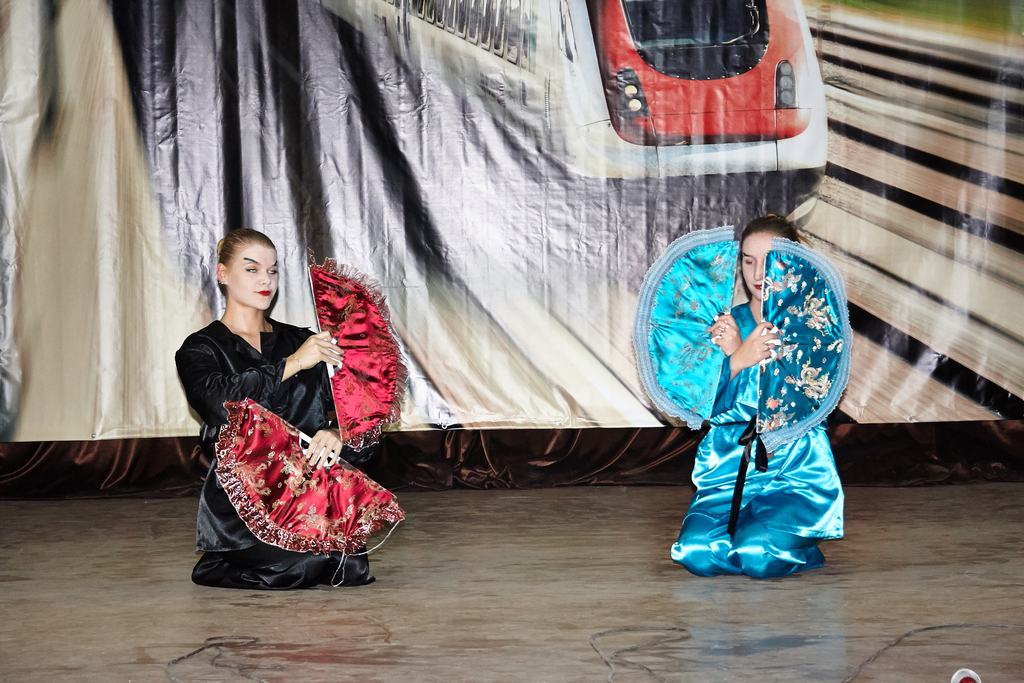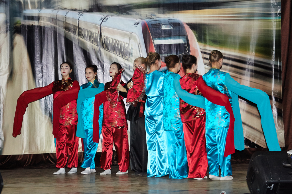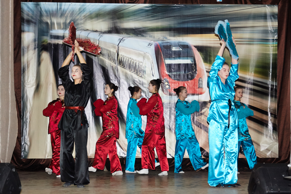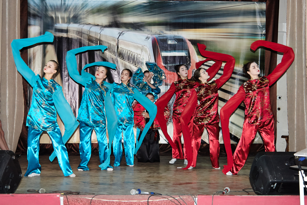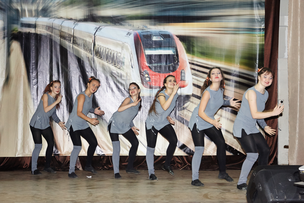 В 14.30 в актовом зале состоялся праздничный концерт. Поезд под названием “Студенческий экспресс” отправился с нашими студентами и преподавателями в разные страны, вели экскурсию проводники Михаил и Анастасия.