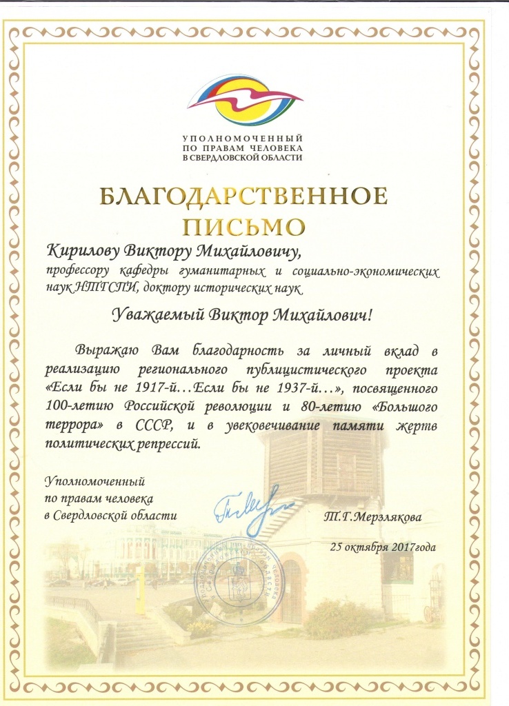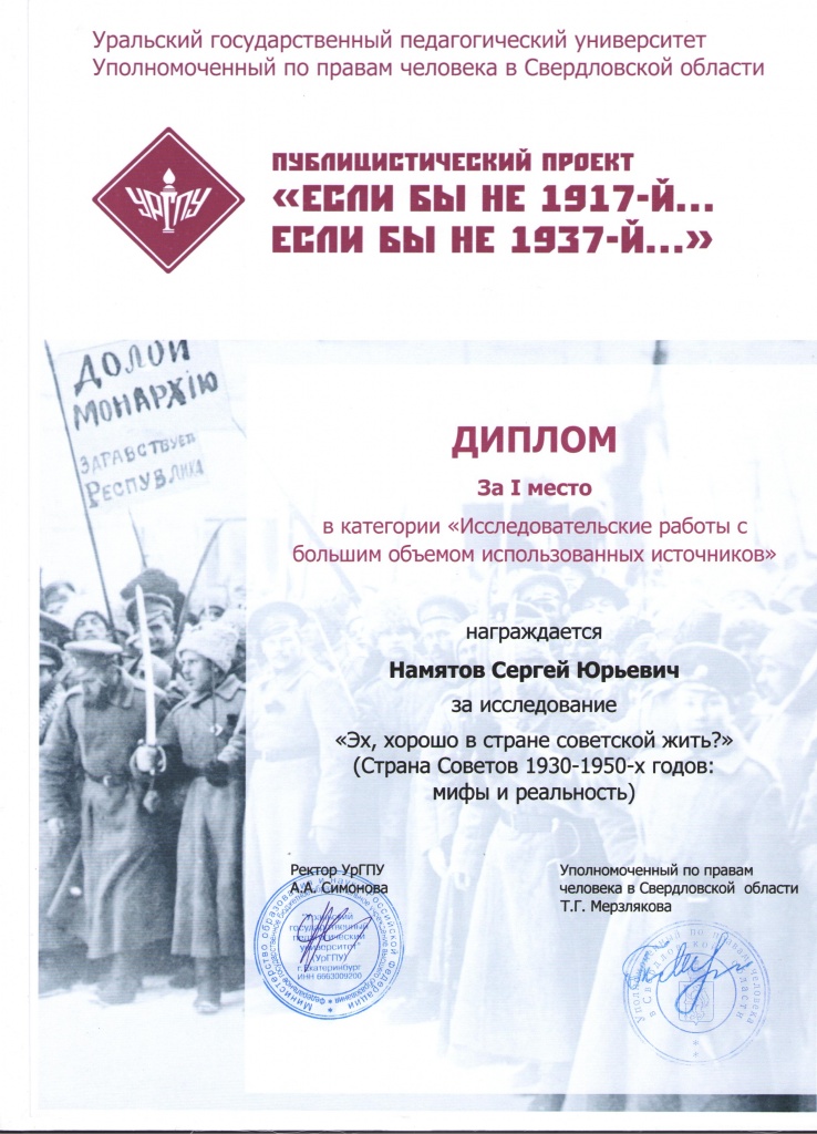 25 октября в Уральском государственном педагогическом университете прошла заключительная конференция Регионального публицистического проекта «Если бы не 1917-й… Если бы не 1937-й…», которая проводилась под эгидой Уполномоченного по правам человека в Свердловской области.
