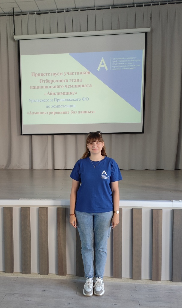 В этом году студентка 4 курса ФЕМИ профиля «Математика и информатика» стала победительницей чемпионата профессионального мастерства Свердловской области «Абилимпикс» сразу по двум компетенциям – «Администрирование баз данных» и «Мастер по обработке цифровой информации», что дало ей возможность летом участвовать в отборочном этапе Национального чемпионата «Абилимпикс», который проходил в Уфе 26–27 июня по компетенции «Мастер по обработке цифровой информации» и 1 июля в Екатеринбурге по компетенции «Администрирование баз данных».