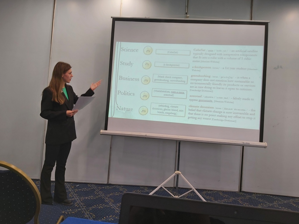 Наш вуз представляла студентка 4 курса ФФМК, гр. Нт-401 о АН, Алена Раскатова и ее научный руководитель – кандидат филологических наук, доцент кафедры иностранных языков и русской филологии Ирина Петровна Зырянова с научно-исследовательской работой «Неологизмы в современном английском языке в период с 2021 по 2022 гг. (на примере британских СМИ)». Результаты исследования получили высокую оценку жюри и были удостоены диплома I степени за успехи в XVII Всероссийском конкурсе достижений талантливой молодежи «Национальное достояние России» по направлению «Лингвистика».