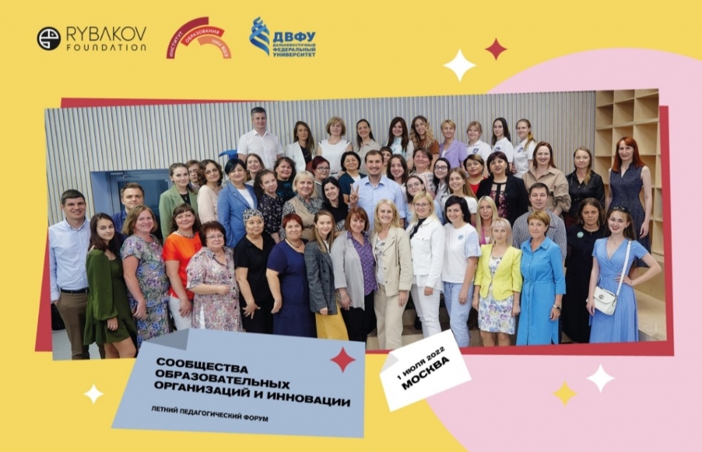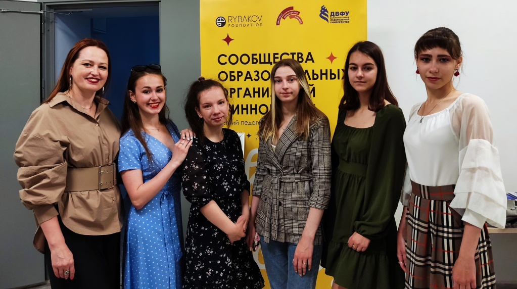 Студентки 2 курса факультета психолого-педагогического образования Ксения Андреева, Альбина Брыляева, Полина Кривошеина, Кристина Кочергина, Василина Савельева и доцент кафедры психологии и педагогики дошкольного и начального образования Анжела Владимировна Соколова посетили летний педагогический форум «Сообщества образовательных организаций и инновации», который проходил 1 июня 2022 г. в Москве и был организован Рыбаков Фондом, Институтом образования НИУ ВШЭ, Школой педагогики ДВФУ.