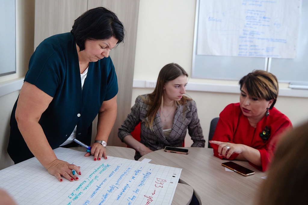 После пленарной сессии участникам форума представилась возможность принять участие в мастер-классах, групповой работе и интерактивной дискуссии по темам: «Общение с родителями: как чувствовать себя спокойно и уверенно?», «Университет и школа: варианты взаимодействия. Импакт сообществ образовательных организаций».