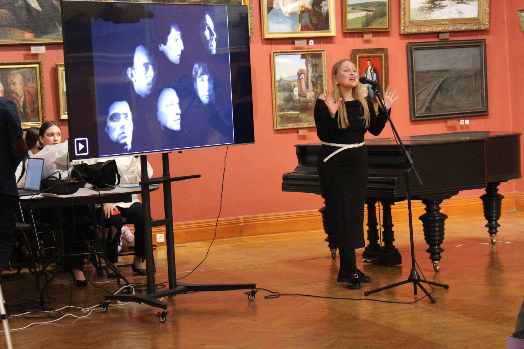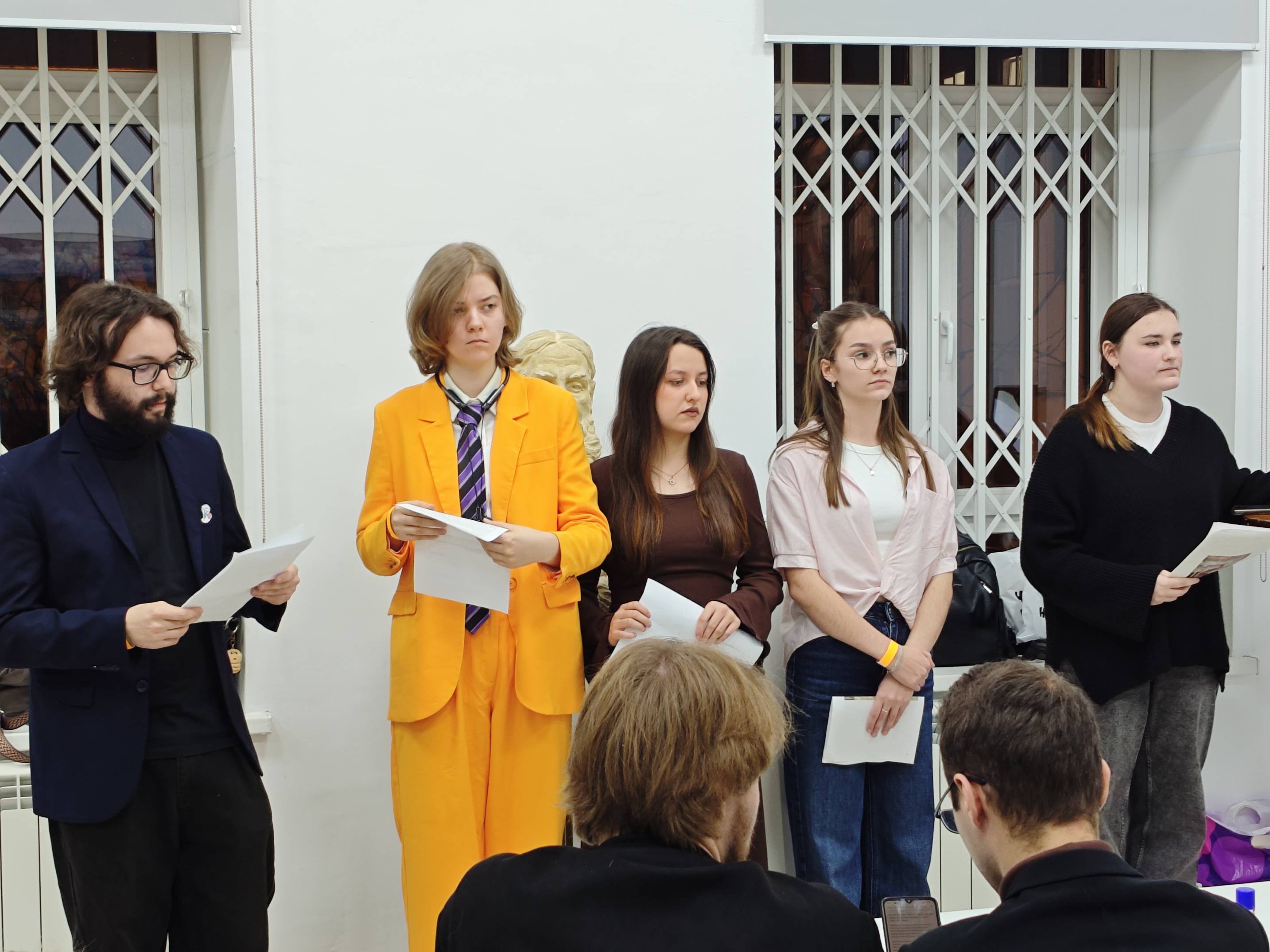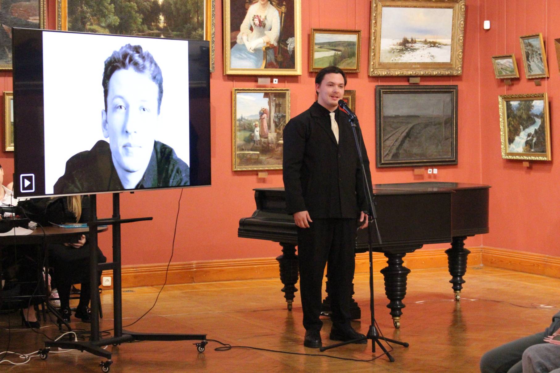 Студенты 1-го курса (профиль «Музыка») в зале русского искусства показали лирическую постановку по стихотворениям Бориса Рыжего, лейтмотивом которой стало воздействие музыки на поэта.