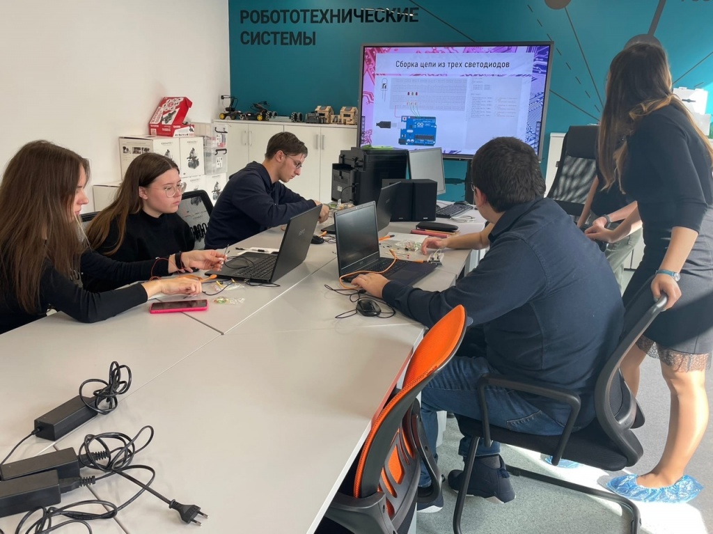 19 сентября студенты факультета естествознания, математики и информатики побывали в технопарке универсальных педагогических компетенций. Студенты 2 курса смогли углубить свои знания по программированию, используя в качестве исполнителя плату Arduino, а студенты 5 курса – попробовать себя в роли педагогов, используя новейшее оборудование.