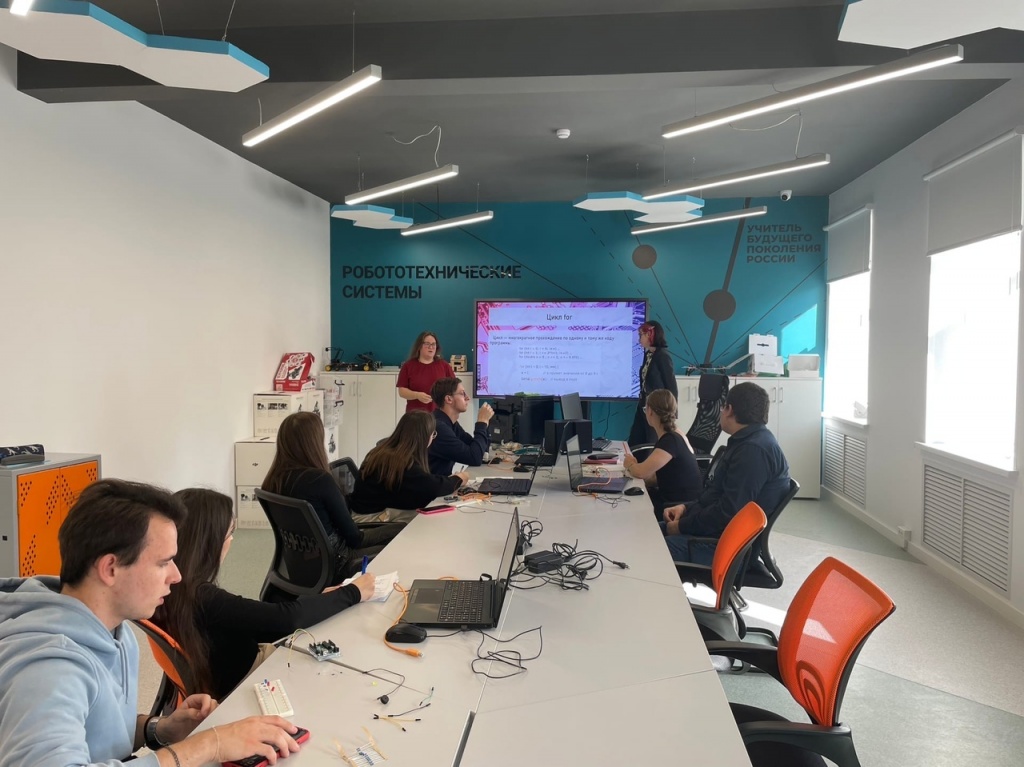 После лекции заданием для 5 курса было подготовить занятия по данным темам с использованием имеющегося оборудования. В это время студенты второго курса отрабатывали умения по решению задач на циклы и функции на языке Python.