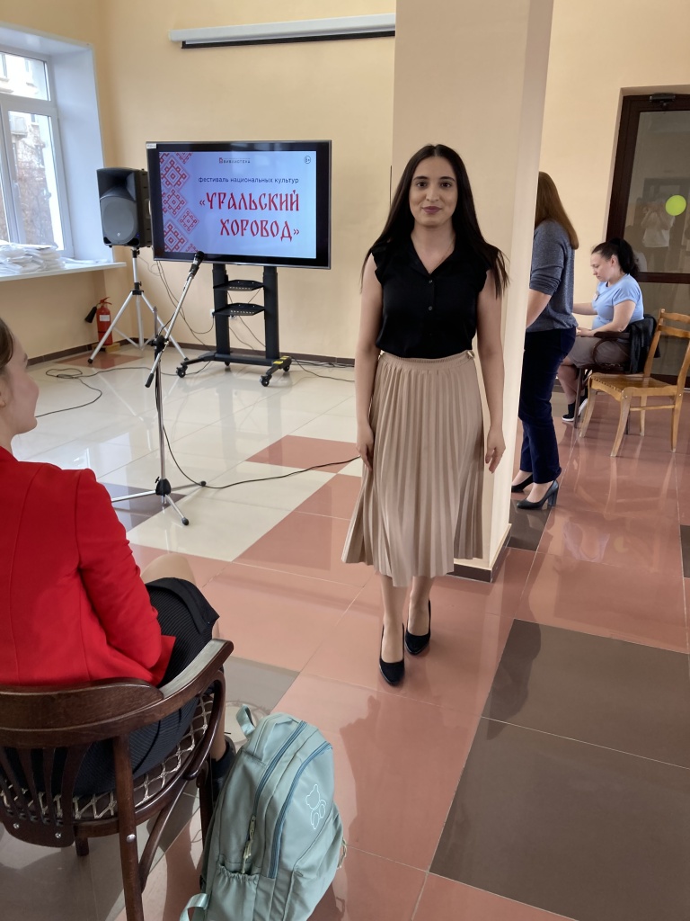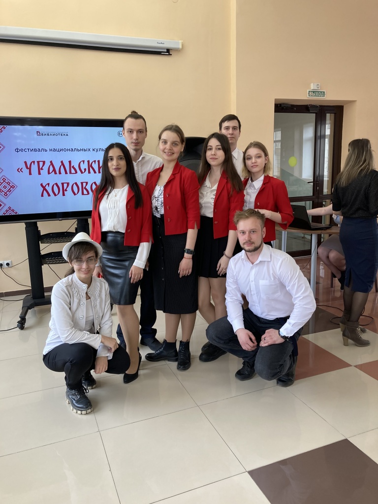 21 апреля в Центральной городской библиотеке состоялся фестиваль национальных культур «Уральский хоровод». В концерте, который проходил в рамках фестиваля, приняли участие студенты группы Нт-401о АН факультета филологии и межкультурной коммуникации вместе с куратором, доцентом кафедры иностранных языков и русской филологии Е. В. Южаниновой.