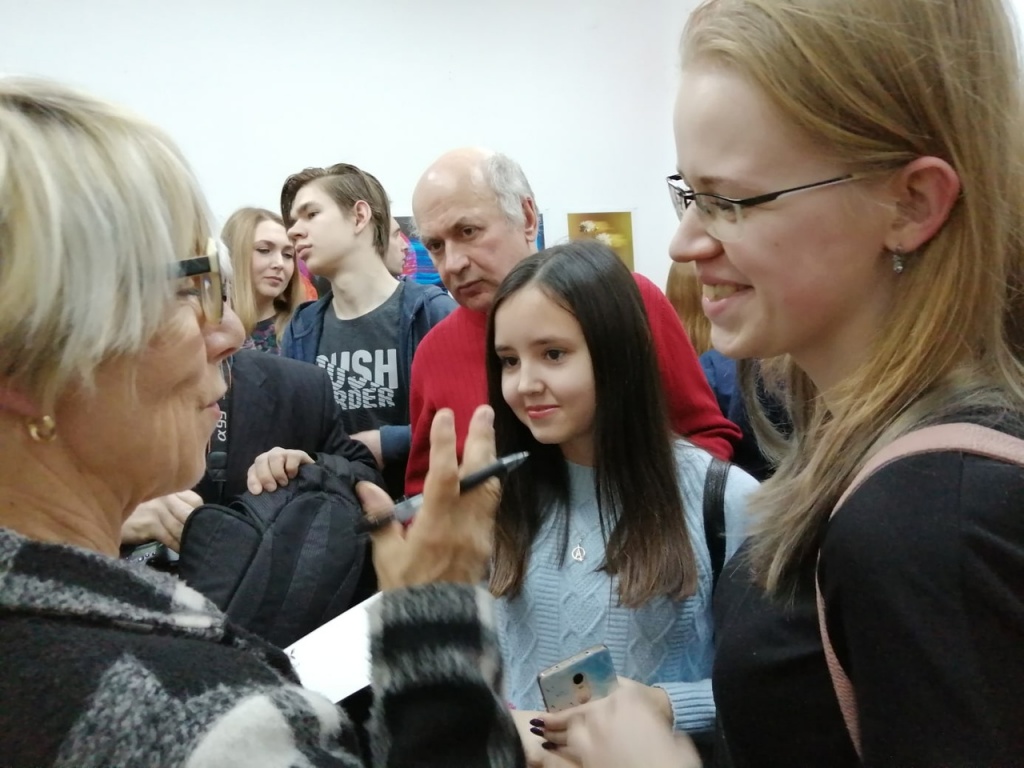 Ребята получили возможность не только насладиться прекрасными работами всемирно известного фотографа, но и пообщаться с ней. Многие из них помогали посетителям в понимании иноязычной речи, способствовали общению тагильчан с иностранной гостьей.