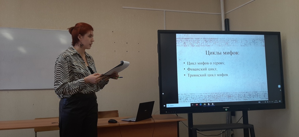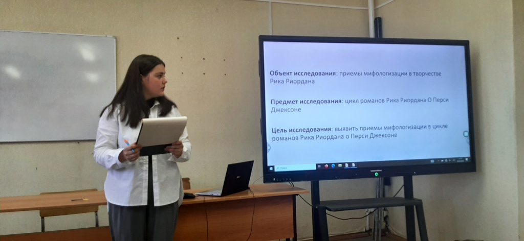 Интерес студентов выпускного курса вызвали проблемы литературоведения, связанные с мифами и их влиянием на русскую и зарубежную литературу. Так, Карина Хафизова обратилась к проблеме трансформации античного мифа об Орфее и Эвридике в поэзии Серебряного века, а Виктория Лагунова заинтересовалась особенностями использования приема мифологизации в творчестве Рика Риордана.