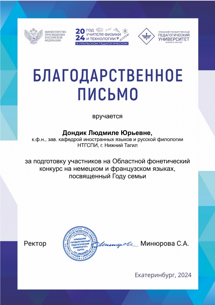 23 мая студенты факультета филологии и межкультурной коммуникации приняли участие в очном финале Областного фонетического конкурса на немецком и французском языках, посвященного Году семьи. Мероприятие проходило в Институте иностранных языков Уральского государственного педагогического университета.