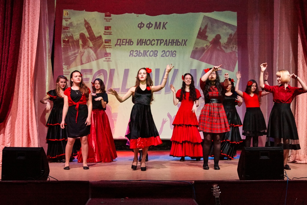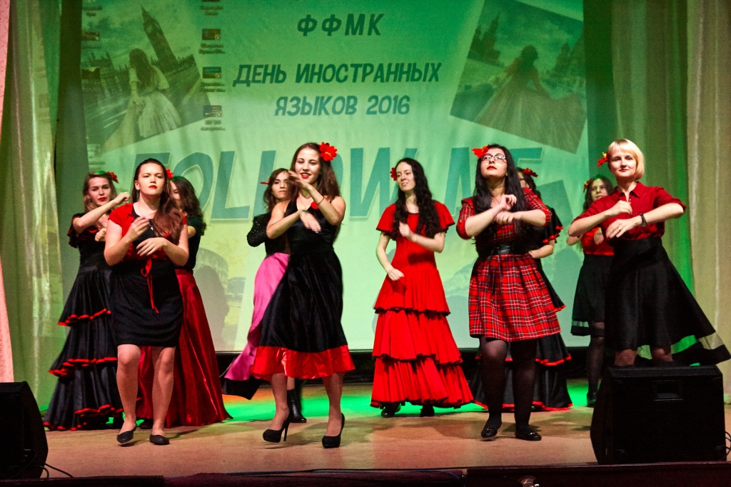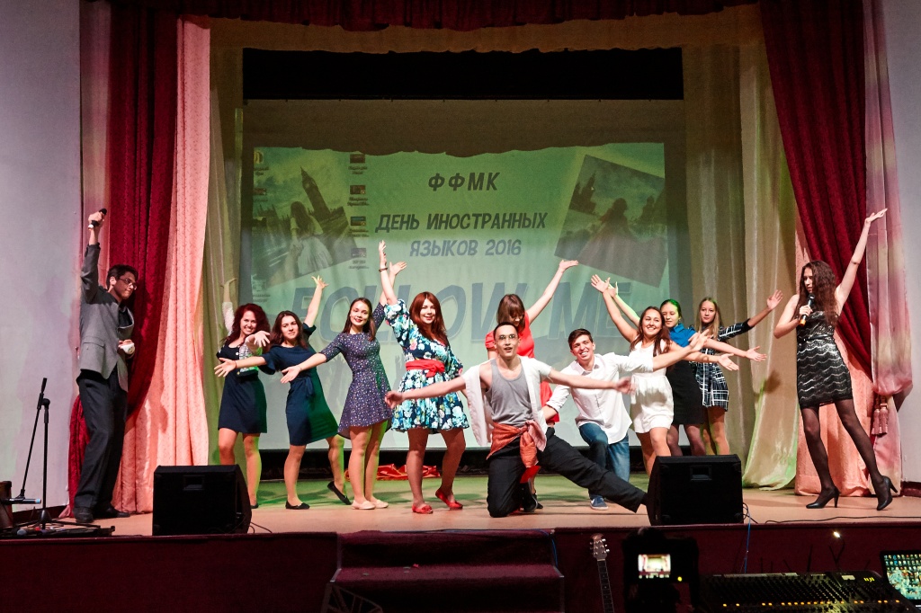 В этом году 29 сентября в актовом зале НТГСПИ прошел яркий концерт, подготовленный студентами. Ребята пригласили зрителей в увлекательное путешествие по разным странам. Язык и культура страны неразрывно связаны между собой, и студентам удалось представить разные языки мира через национальные песни, танцы и театральные постановки. Зрители узнали много нового о традициях, казалось бы, знакомых народов. Пестрый калейдоскоп номеров от студентов ФФМК позволил зрителям перенестись в Германию, Францию, США, Испанию, Доминикану, Конго, Китай и другие страны.