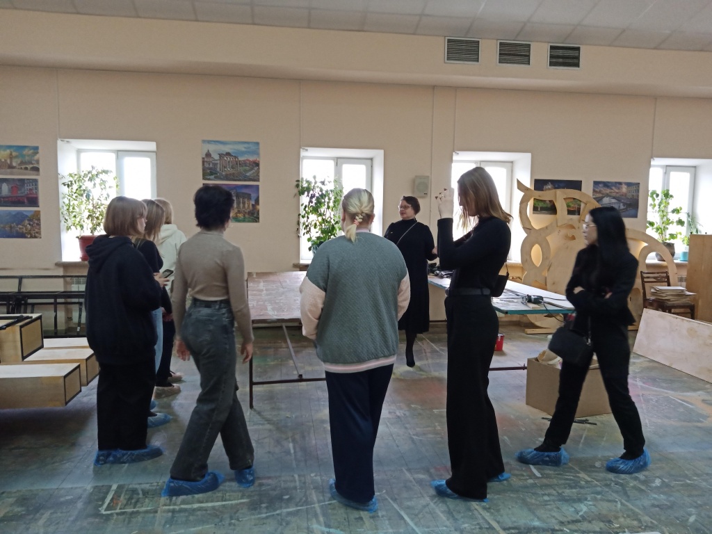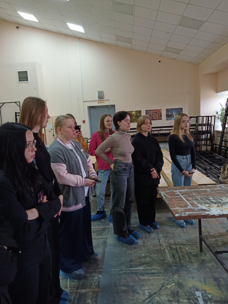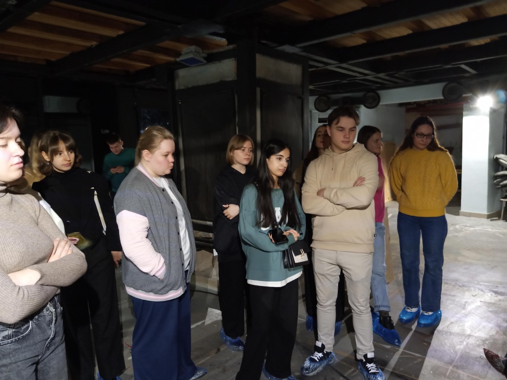 После посещения музея началась самая интересная часть экскурсии – знакомство с различными цехами: пошивочным, бутафорским и другими. Некоторые участники экскурсии даже примеряли на себя театральные костюмы – прочувствовали, каково это на протяжении 1–2 часов носить на себе такое обмундирование. Интерес вызвали различные экспонаты: например, русалочий хвост, медведь (участник спектакля «Бесприданница») и др. Студенты узнали о значимости света и звука в театре, увидели репетиционный зал, а также спустились в нижнюю часть здания – под сцену – своеобразное «сердце» театра. Здесь когда-то шел легендарный спектакль по пьесе М. Горького «На дне». На протяжении всей экскурсии Мария Шабашова рассказывала много интересного о специфике театральной жизни, об интересных постановках, присутствующих в нынешнем репертуаре, а также уже «канувших в лету».
