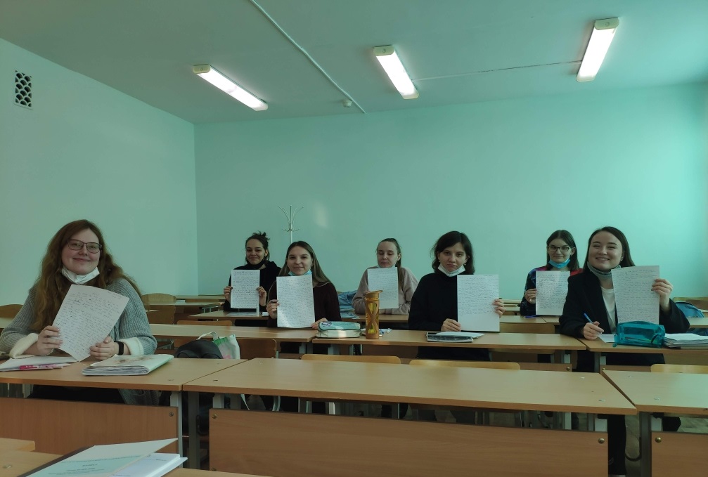 Целью акции является популяризация немецкого языка и мотивация к его изучению, а также развитие культуры грамотного письма на немецком языке и поддержка международного сотрудничества. Акция стала доброй традицией в системе общего образования и с каждым годом масштабы ее растут. Так, в прошлом году в акции приняли участие более 70 000 человек из 36 стран мира. В нашем вузе традиционно принимают участие все студенты, изучающие немецкий язык – 52 студента ФФМК с 1 по 4 курс.