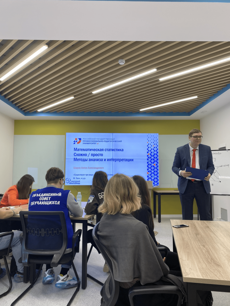 Антон Александрович Шаров, заведующий лабораторией нейро-образования и когнитивистики профессионального образования РГППУ, прочитал познавательную лекцию с элементами интерактива о методах анализа и интерпретации, вовлек студентов в масштабную научную дискуссию, не обошелся и без весьма остроумных и уместных шуток.