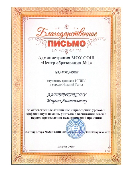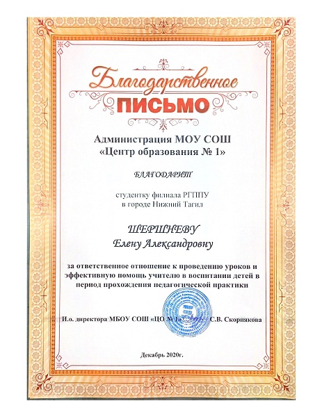 Администрация школ выражает благодарность студентам, которые смогли заменить учителей, профессионально справились со всеми сложностями в организации образовательной деятельности в начальной школе, помогали в решении иных задач, которые стояли в этот период перед школой, проявляли ответственность, открытость и творческий подход. Отдельную благодарность руководители школ выражают всему педагогическому коллективу института за качественную подготовку будущих выпускников!