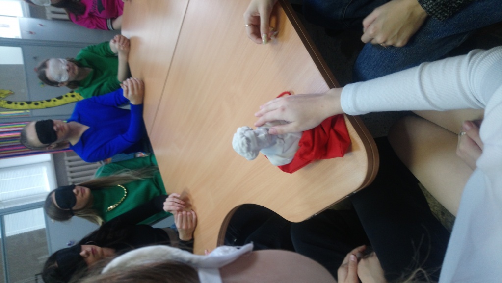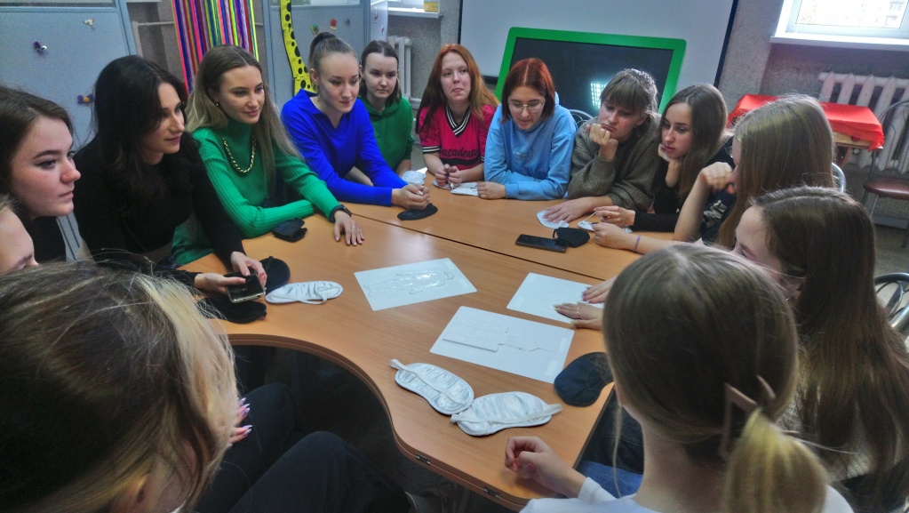 Далее студентам предложили надеть повязки на глаза, чтобы в полной мере прочувствовать то, как ощущают себя незрячие люди. Будущие психологи приняли участие в сеансе симуляционной игры на понимание ощущений незрячего человека.