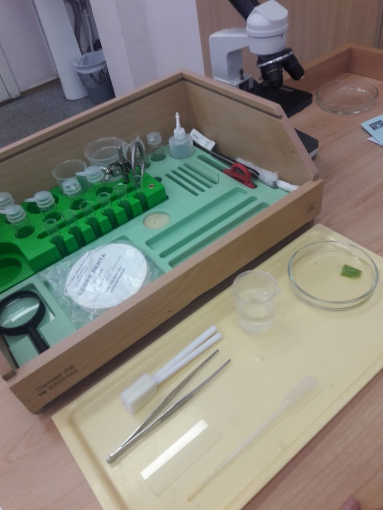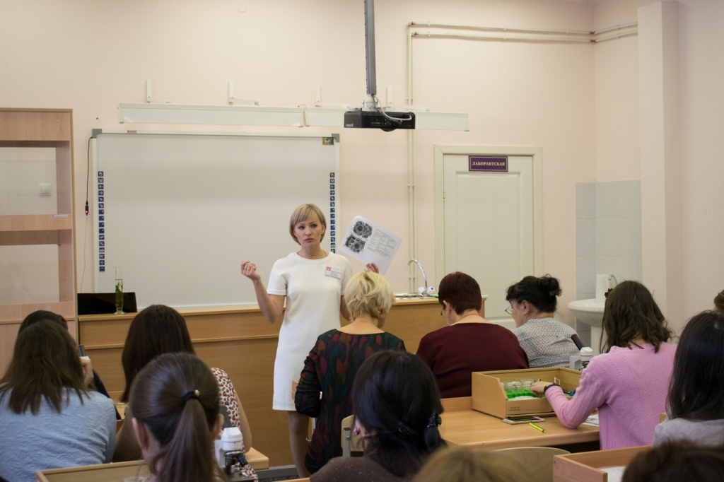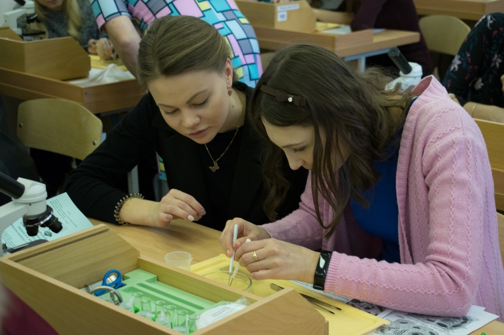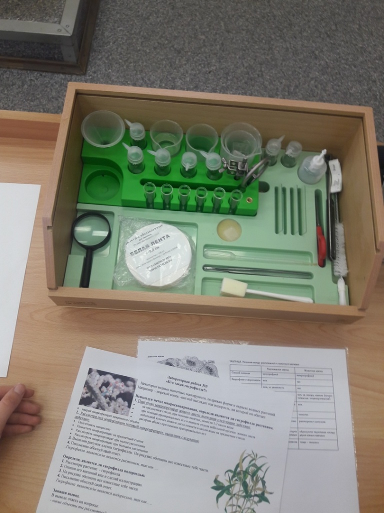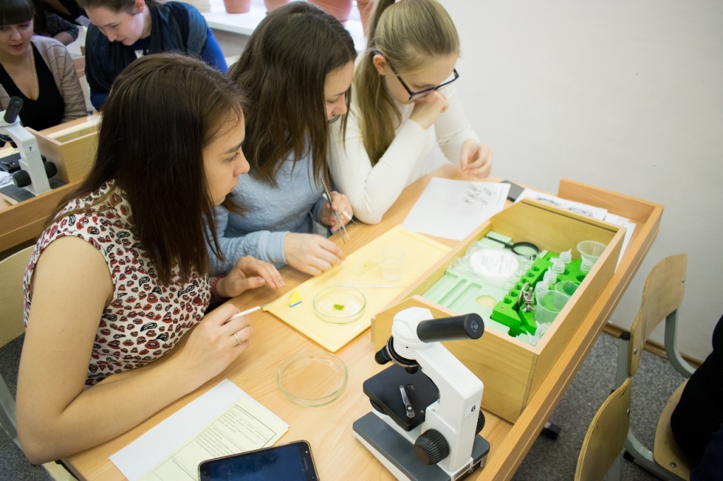 Практикум проходил в форме урока биологии, на котором был представлен кейс лабораторной работы. Наше внимание сразу привлекла мини-лаборатория, которая стояла на каждой парте. Нам предстояло оказаться в роли школьников и выполнить лабораторную работу, используя предоставленный пакет инструкций и оборудование.
