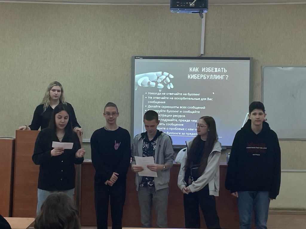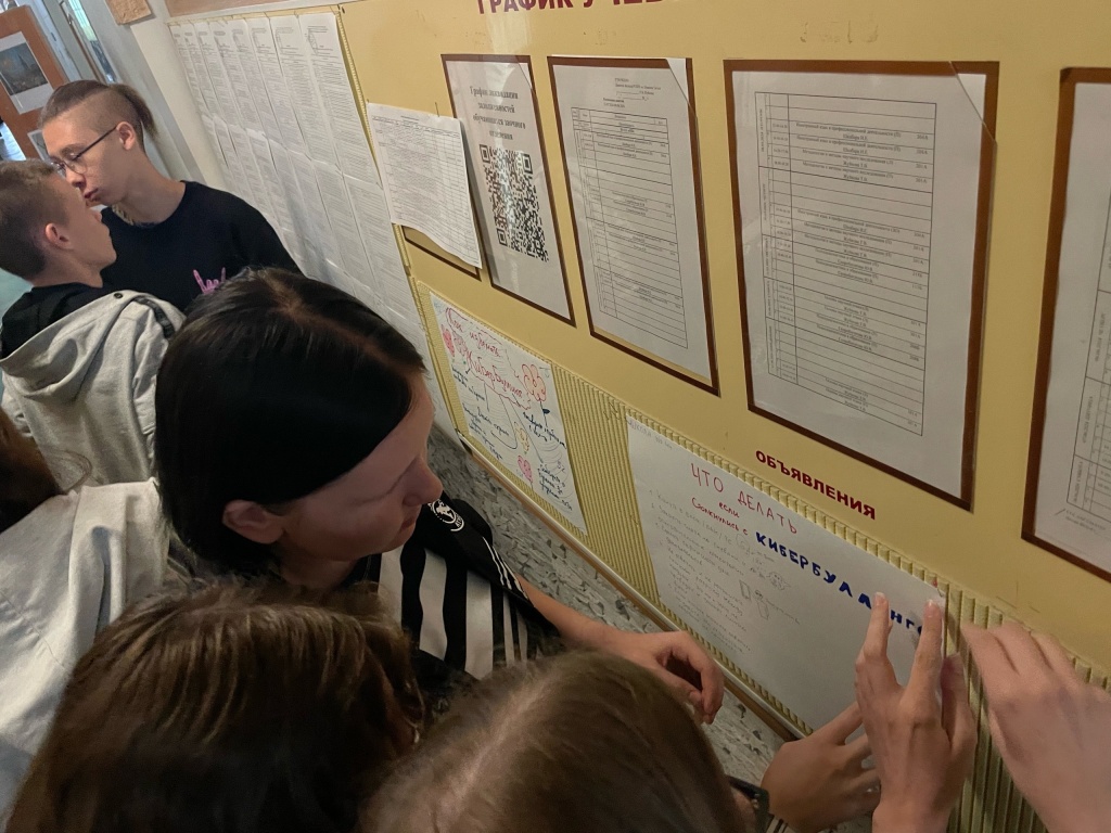 7 июня студенты рассказывали о кибербуллинге. Обучающиеся узнали, что такое кибербуллинг, какую ответственность несут участники кибербуллинга, какие стратегии эффективного поведения следует применять в ситуации интернет-травли. Занятия провели Артём Захваткин, Анастасия Крупец, Полина Кучина и Мария Хомякова. В ходе занятия школьники познакомились с форматом решения кейсов с ситуациями, также нарисовали памятки, которые помогут избежать кибербуллинг.