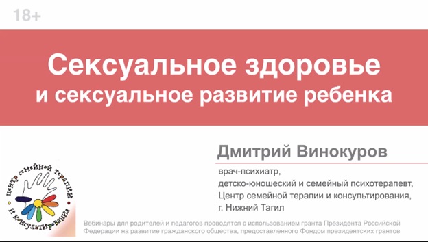 Дмитрий Винокуров подробно остановился на тех качествах, умениях и навыках, которые должны быть у ребенка, чтобы он мог развить полную гармонию со своим телом, со своей душой, развить свою сексуальность и поддерживать сексуальное здоровье. Рассказал о том, что не нужно стыдиться своих желаний, эмоций, чувств, о том, как важно родителям поддерживать своих детей и не заставлять их чувствовать себя виноватыми. Важно общаться со своим ребенком и, наоборот, говорить ему, что с ним все нормально и ничего постыдного он не делает. Интересным был момент рассказа о сексуальном лексиконе, которого также не нужно стыдиться использовать при беседе на тему сексуальности. В конце вебинара ведущий ответил на вопросы его участников.